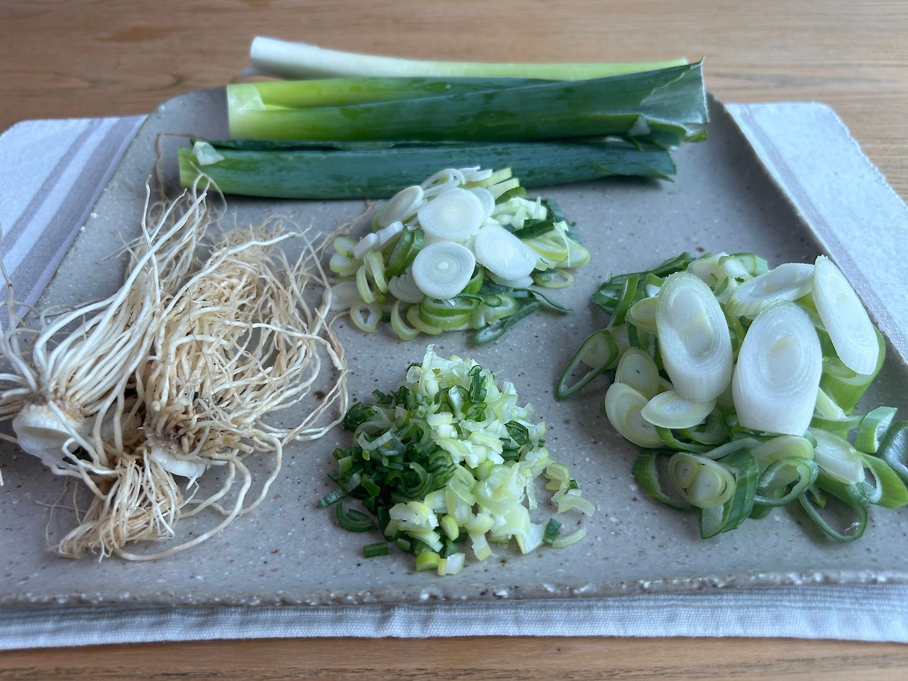 대파의 껍질을 벗기고, 뿌리는 잘라 실온에 말리고, 길게 썰기, 어슷썰기, 가로 썰기, 다지기 형태로 대파를 썰어서 각각 소분하는 동안 혼자 말을 건다.