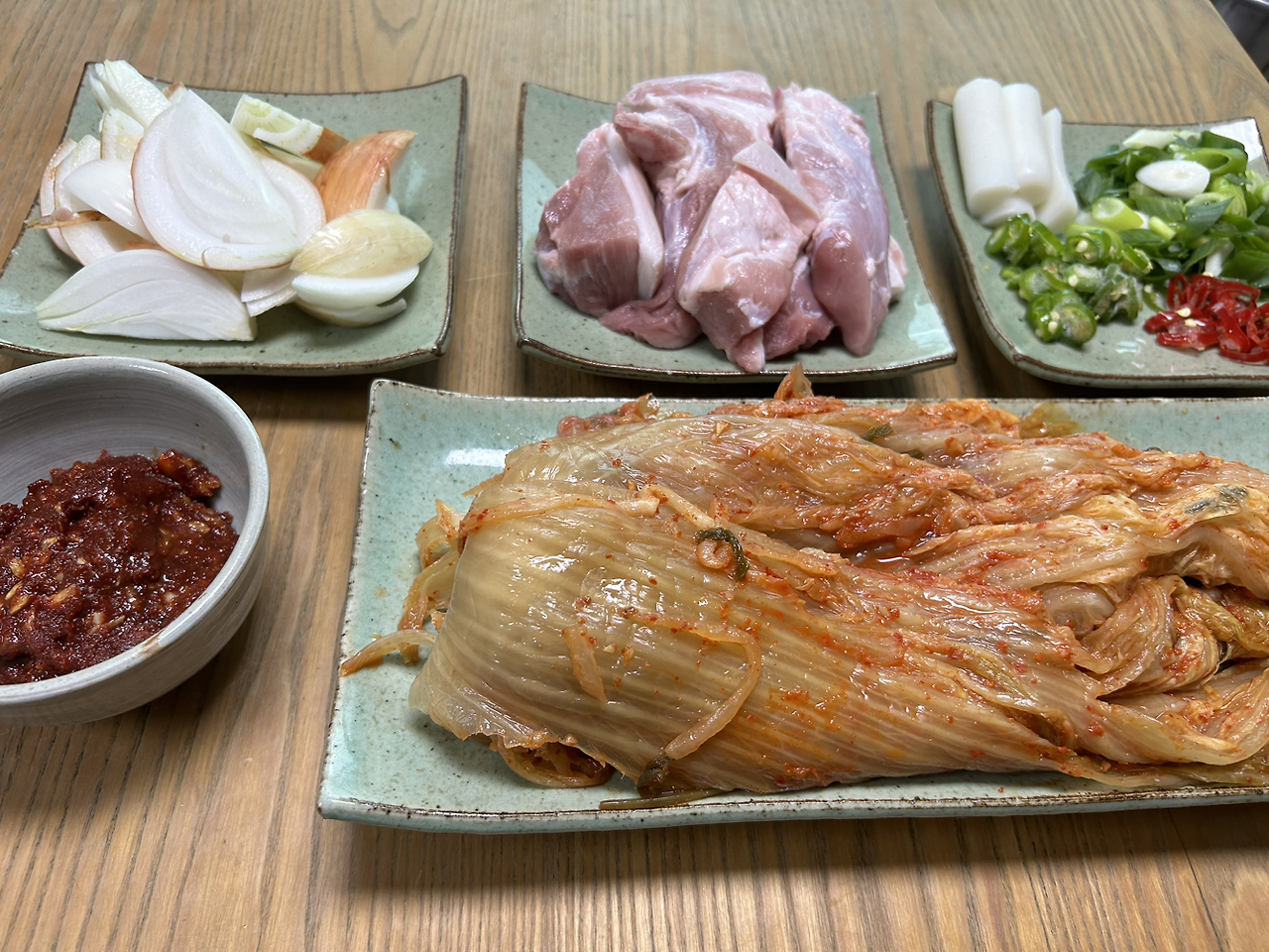 어차피 <김치찜>은 돼지고기 듬뿍 넣고 김치가 무르도록 오래도록 뭉근하게 끓이는 음식이기 때문에 딱!이었다.