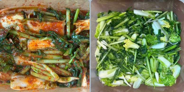 * 김치를 시원하게 먹으려면 찹쌀 풀도 패스해도 무방하다. 하지만 김치가 제대로 발효되기 위해서는 탄수화물이 필요하기 때문에 잘 발효되라고 넣는 편이다. 따라서 찹쌀 풀을 넣을 때는 김치가 빨리 익기 때문에 냉장고에 넣는 시간을 잘 체크해야 한다. 찹쌀 풀은 각 자의 입맛에 맞게 이용한다.