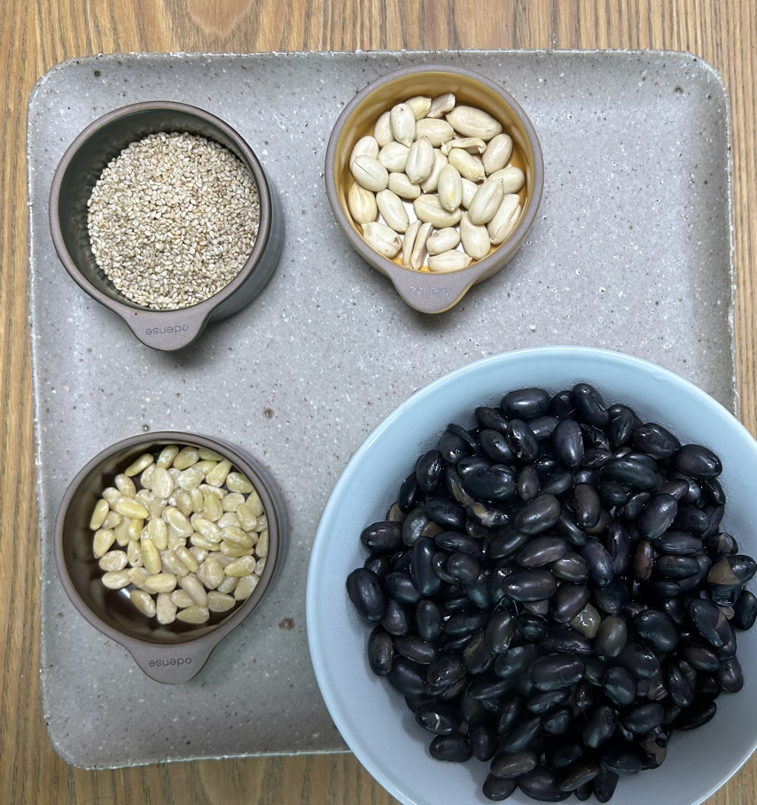 옛날에 우리 엄마는 콩 껍질도 다 까서 부드럽게 만들었는데, 나는 콩 껍질 까는 것이 만만치 않다는 것을 알기 때문에 패스~한다. 그리고 서리태 콩 껍질에 안토시안이라는 영양 성분이 있다고 해서 굳이 번잡스럽게 콩 껍질을 깔 필요가 없다. 약간 콩국물이 거칠긴 해도 먹을 만하다.