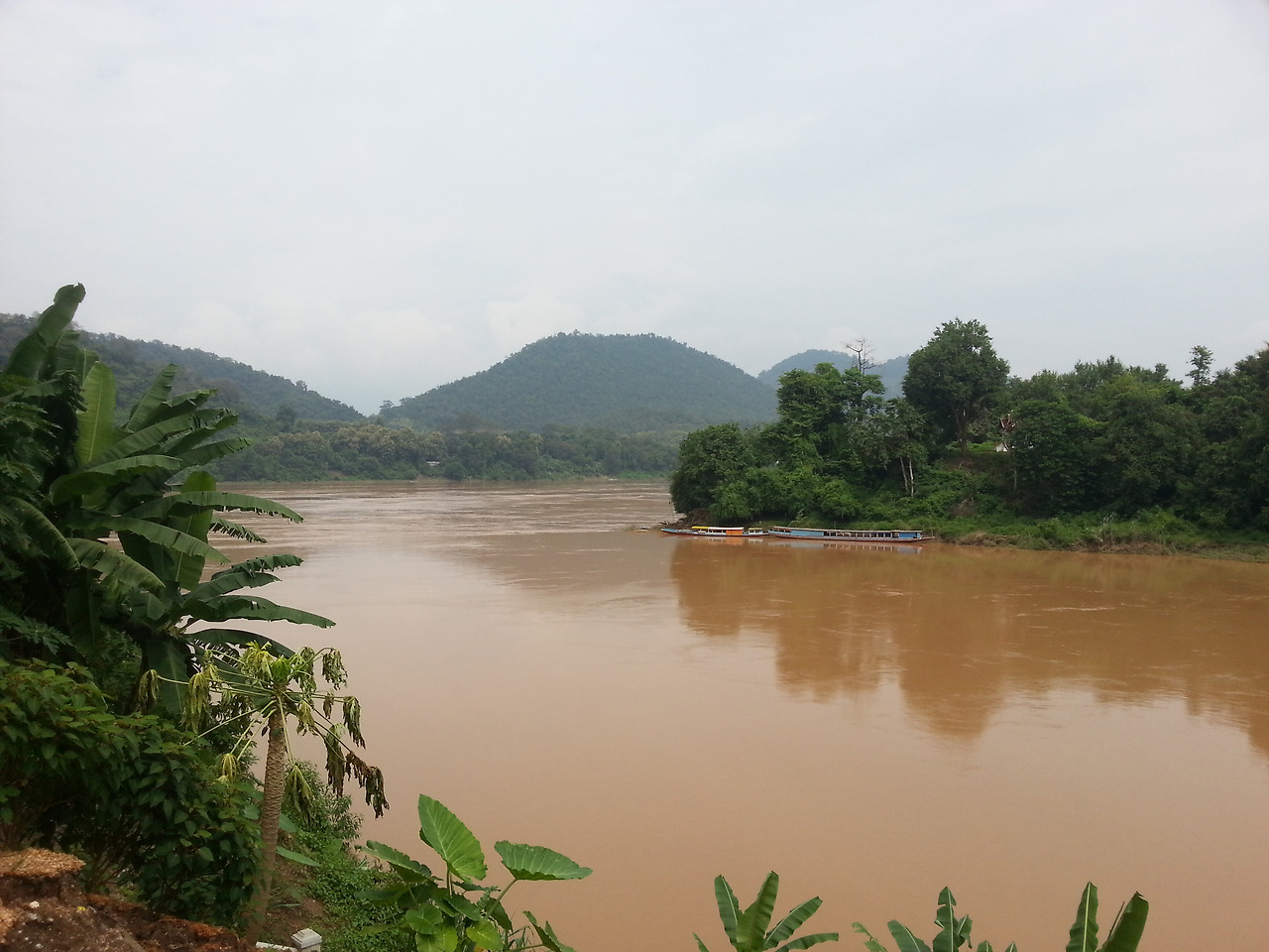 메콩강 기슭의 평화로운 도시 그리고 사원들