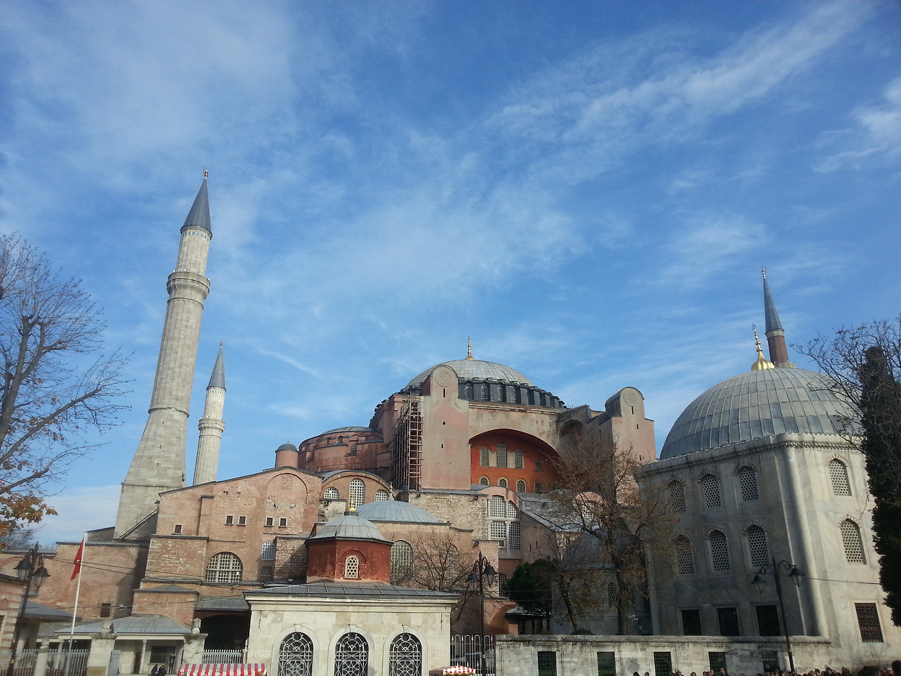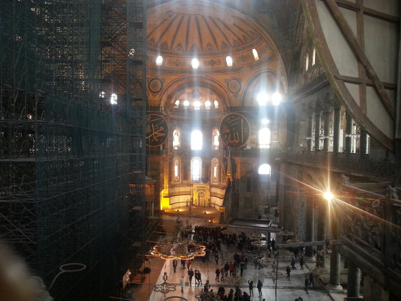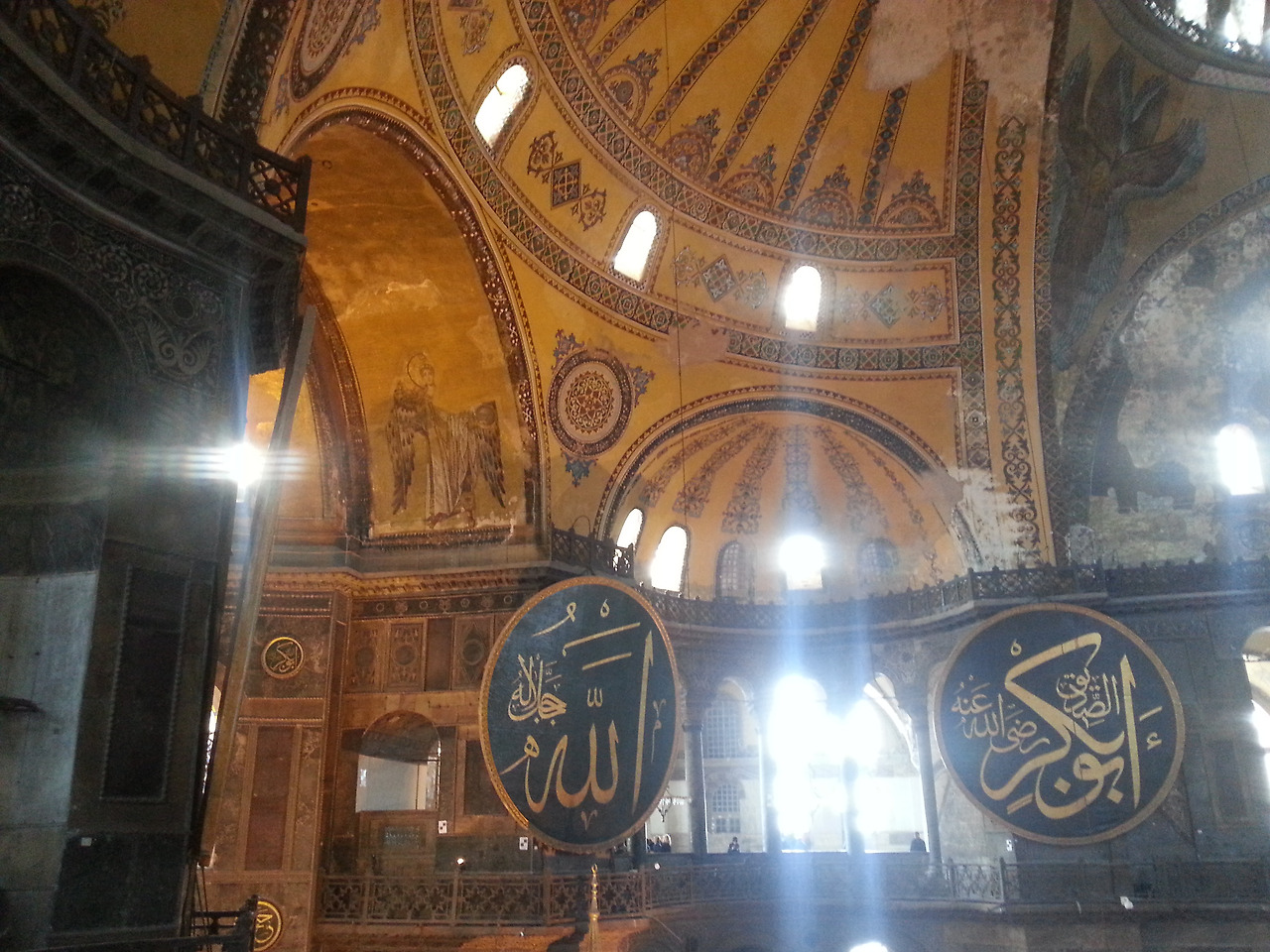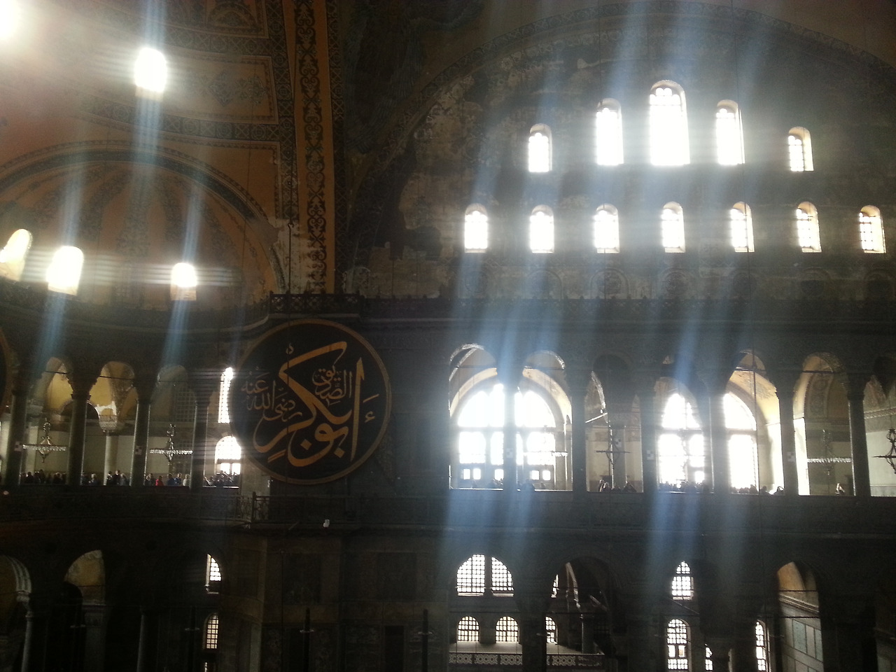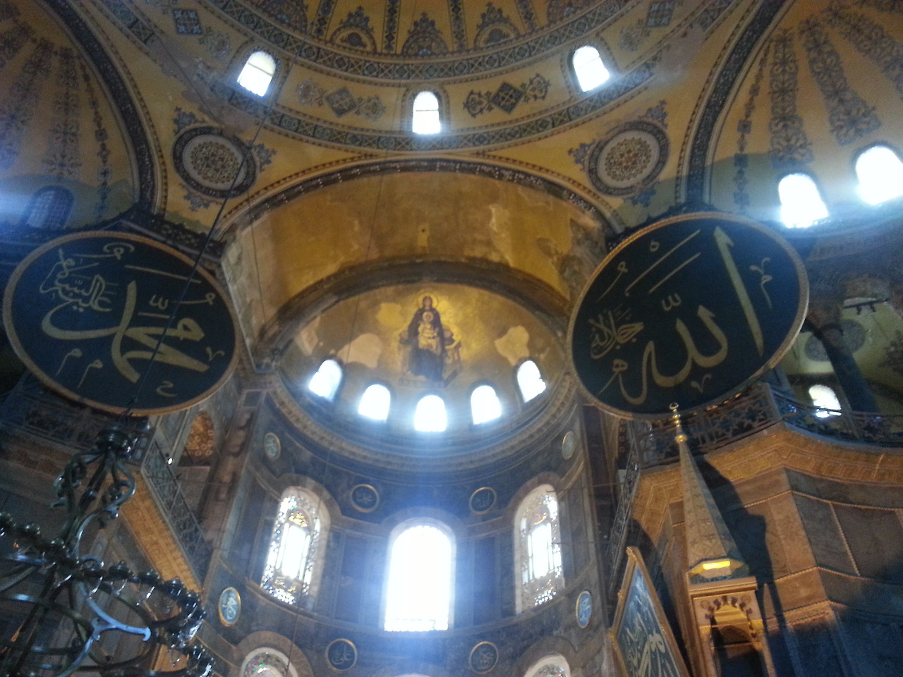유럽과 아시아를 함께 느끼는 가장 좋은 곳은 아야 소피아 성당이다. 기독교 성당으로 만들어진 곳이지만 너무나 아름답고 훌륭한 건축물에 이슬람교도들이 이 곳을 점령한 후 건물을 부수는 대신 이슬람 사원으로 개조하였다. 무게를 지탱하기조차 어려운 커다란 돔을 올리기 위해 채택한 방법이 돔 자체에 창문을 많이 만드는 것이었다. 결국 그 창문으로 들어오는 햇빛이 너무나 찬란한 장면을 연출한다.