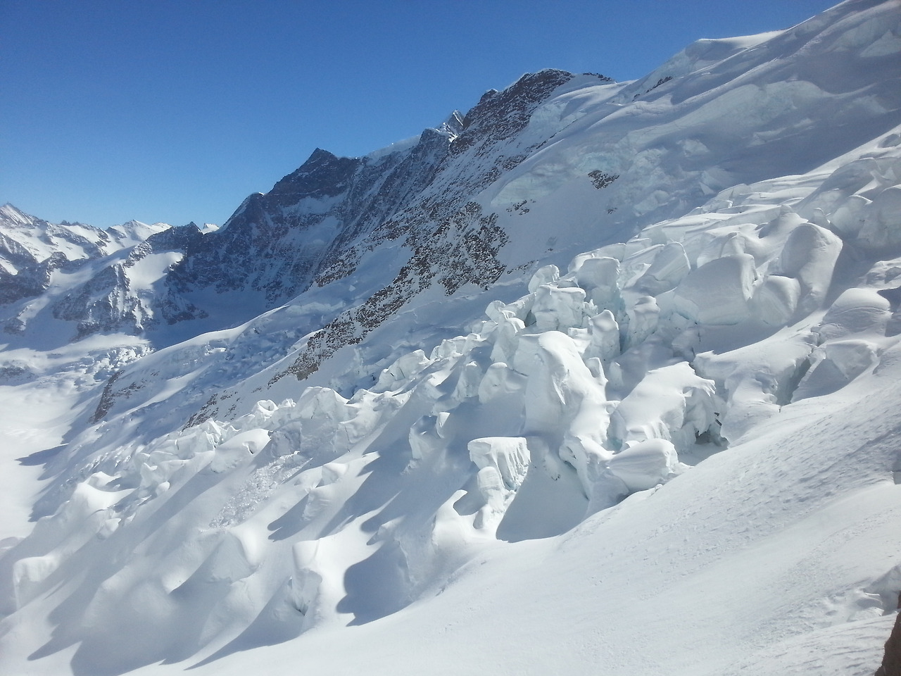 1년 365일 눈과 얼음으로 덮인 융프라우와 알프스의 거인들의 세상이다. 아이거와 묀히를 나란히 두고 그린델발트, 휘르스트, 시니케플라테, 하더쿨룸까지 거인들의 세상이 펼쳐친다.