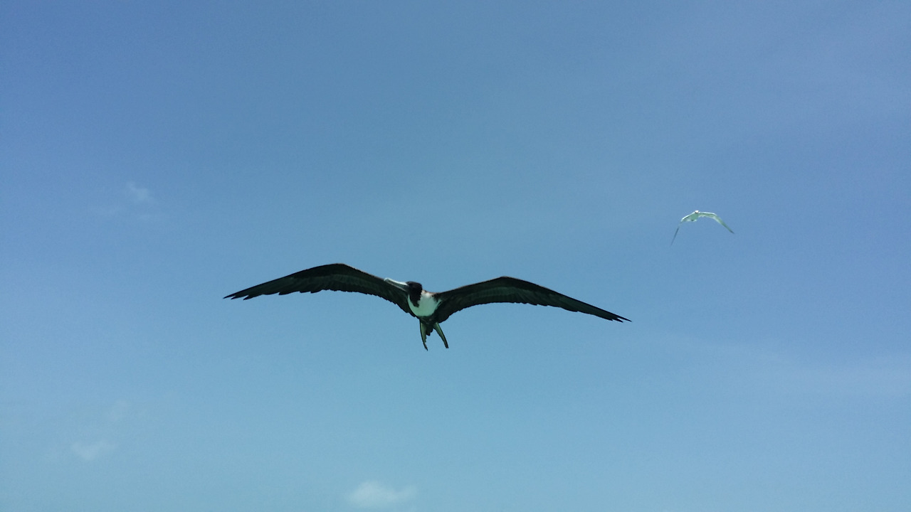 그 하늘 사이로 날갯짓도 귀찮은 듯 아니 멈춰진 시간을 즐기는 듯 활공을 즐기는 익룡을 닮은 커다란 새가 있다. 오로지 하늘만을 위해 진화했다는 군함새이다. 바닷가에 사는데 깃털에 기름기가 없고 물갈퀴가 작아서 헤엄을 못 치는 새, 힘이 없는 발은 땅위를 걷기는커녕 서 있지도 못한다. 시속 400km의 속도를 낼 수도 있지만 여간해서는 날갯짓 한 번 하지 않고 연처럼 그저 하늘을 떠 다닌다.