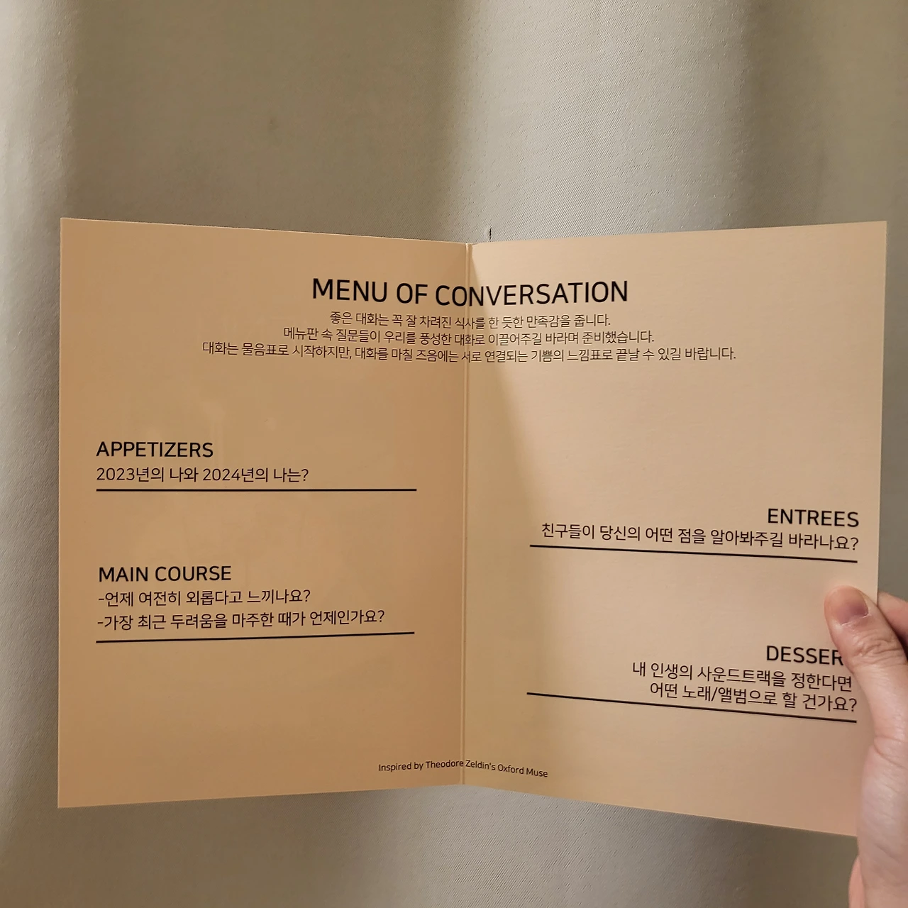 메뉴판 속 질문들이 우리를 풍성한