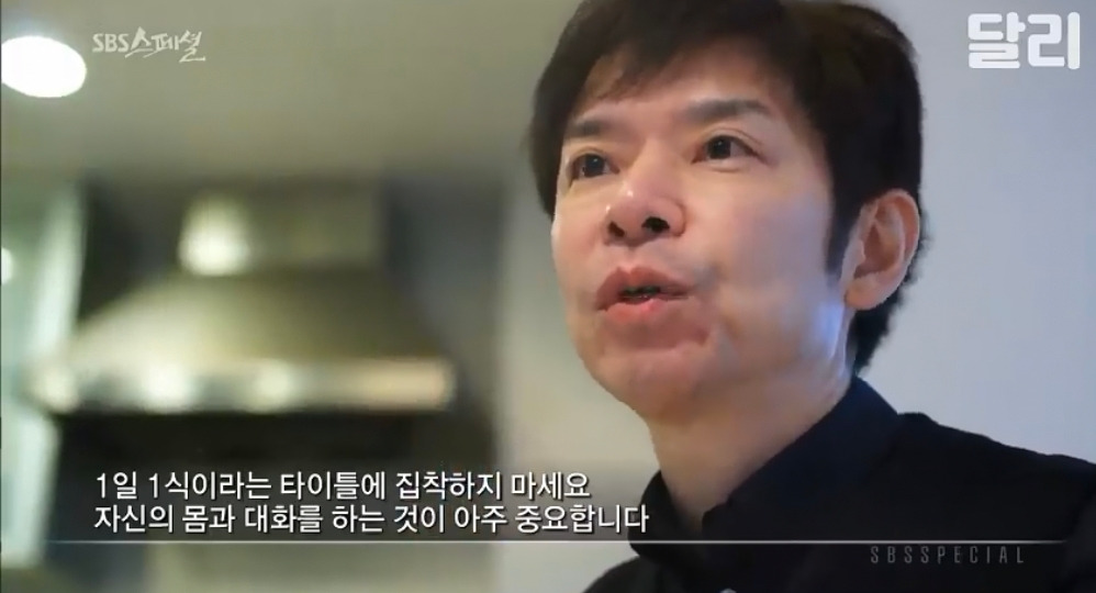 - 1일 1식: 배고픈 느낌이 들 때 식사를 시작한다. 자기 전 2시간 전에는 식사를 끝내는 것이 좋다.