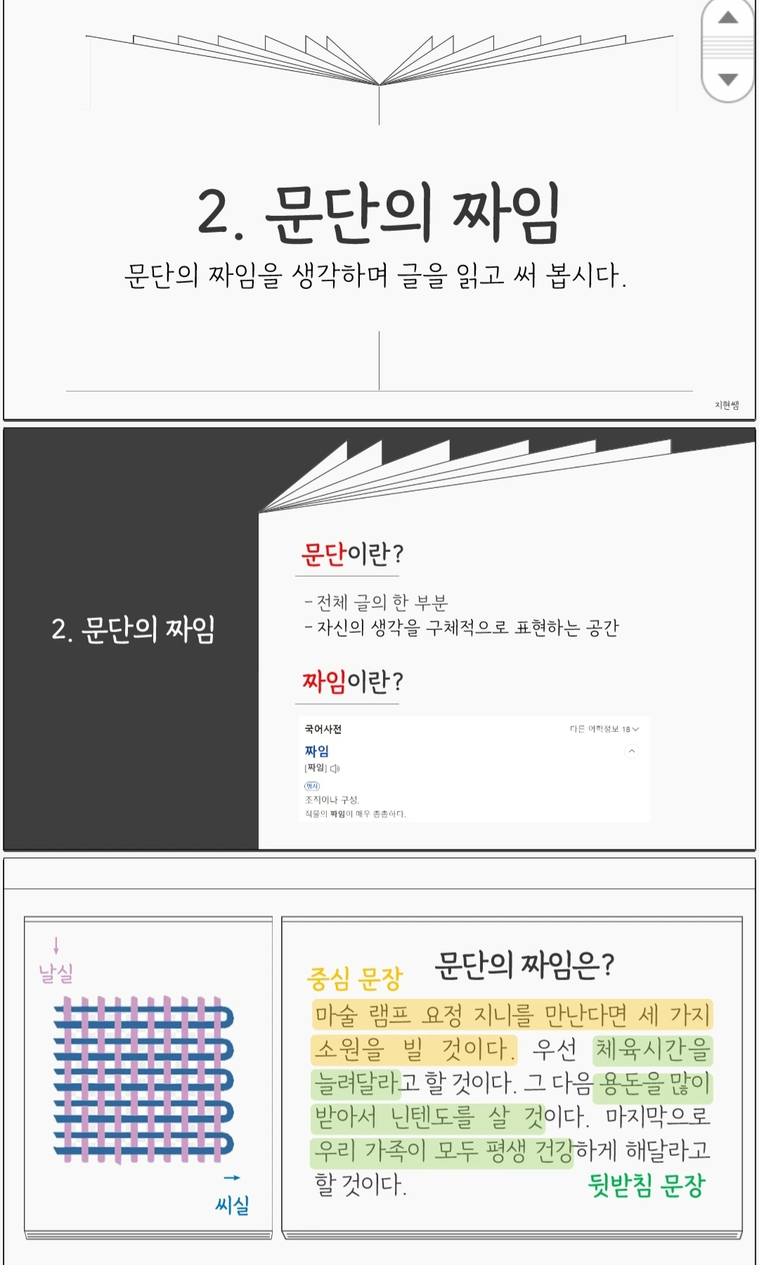 그런데 단원에서 다루는 것이 문단과 짜임, 즉 중심 '문장'과 뒷받침 '문장'인 만큼 핵심 낱말로 버블맵을 나타낸 이후에는 문장으로 글 전체를 정리해야 하나 싶다가도, 성취기준이 '문단과 글의 중심 생각을 파악한다'이니 핵심 낱말로만 정리해도 되는 건지 고민된다.