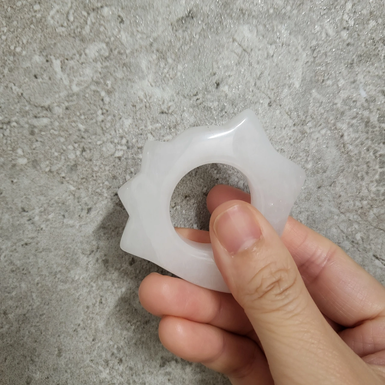반지 괄사를 양손에 끼운 뒤 측두근을 풀어주면 그렇게 개운할 수가 없다. 다만 이 제품은 마감이 지나치게 뾰족한 부분이 있어 아플 때가 있다. 나무와는 다른 질감이라 더 그렇게 느껴지는 것 같다. 기왕이면 유명한 반지 괄사를 사는 게 이런 위험을 줄이는 데 도움이 되지 않을까 싶다.