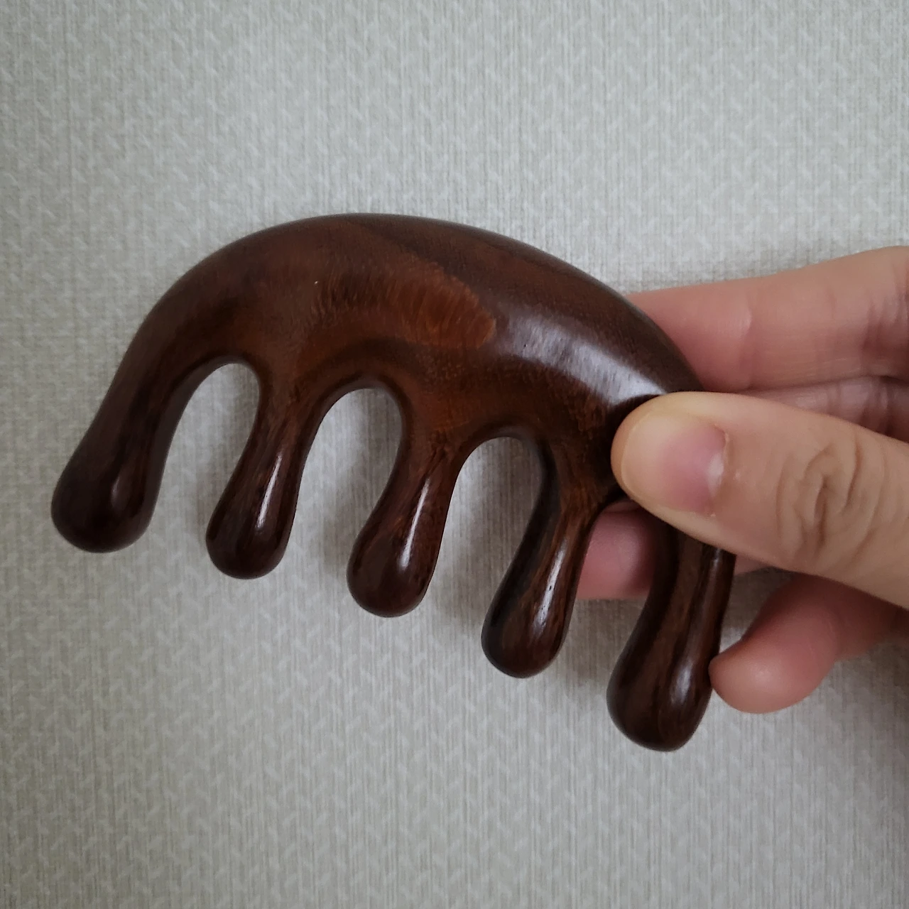 스트레스받을 때, 뒷목이 뻣뻣하다는 느낌을 받을 때 사용하기 딱 좋은 괄사다. 나는 뒷목의 윗부분이 많이 뭉쳐 있어서 불편함을 자주 느꼈다. 거길 풀어주려면 팔을 번쩍 들어 올려야 하는데 나무라서 가볍고, 닿는 부분이 둥글어서 자극적이지 않아 좋았다. 이걸로 측두근 풀어주면 극락을 느낄 수 있다.