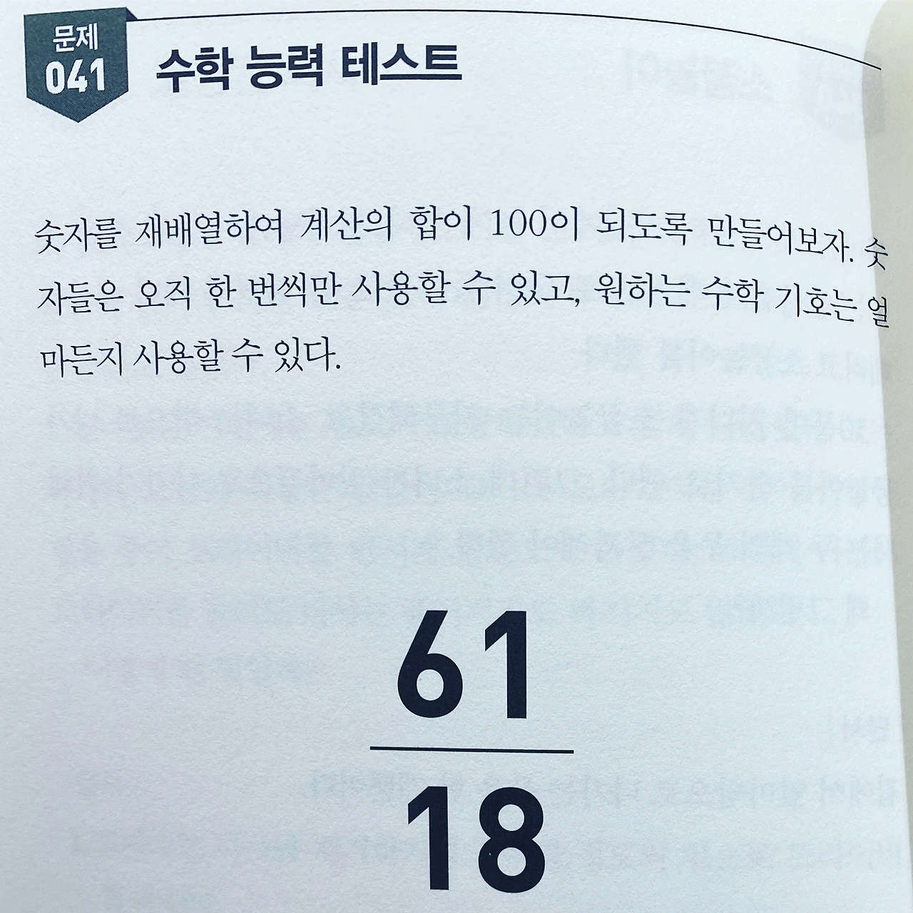 군대 훈련소에서 동기들과 봤던 멘사논리퍼즐 책. 최근 서점에 갔다가 똑같은 책을 발견했다. 반가운 마음에 책을 폈는데 내가 기억하고 있는 그 문제가 보였다.