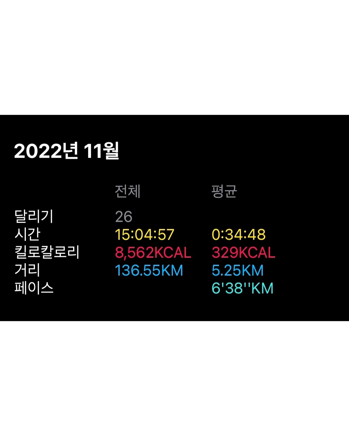 안 받을 수는 없으니까 푸는 것이 중요하다고. 나는 애플 워치에 기록된 달린 횟수를 보여줬다. 11월에 30일 중 26회를 달렸다. 12월에는 13일 중 10회를 뛰었다. 나는 달리기를, 어떤 이는 독서를, 또 다른 누군가는 넷플릭스 보는 것으로.