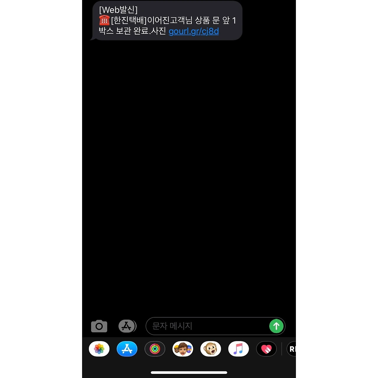 요즘은 택배로 물건을 부르는 게 일상이다 보니 가끔은 뜯어보고 나서야 내용물이 뭔지 알게 되는 경우도 종종 있다.(이벤트, 친구가 보내주는 것 등) 보통은 택배를 문앞에 두고 기사님이 문자를 남겨주는데 어떤 곳은 인증샷을 남기기도 한다.(분실 우려 때문) 하지만 주의할 점이 있다. 문자에 링크가 들어가 있으면 절대 클릭하면 안된다. 보안이 약한 핸드폰은 순식간에 악성앱이 설치되고 핸드폰에 있는 정보가 털릴 수 있다는 점.