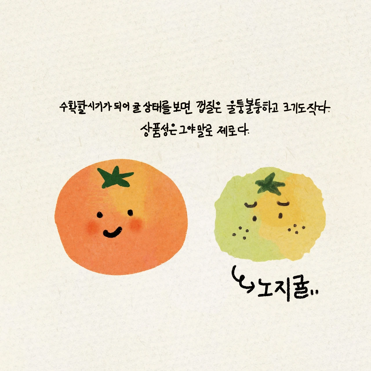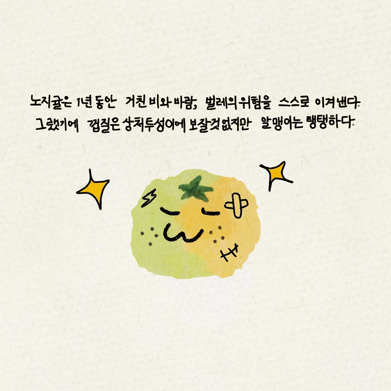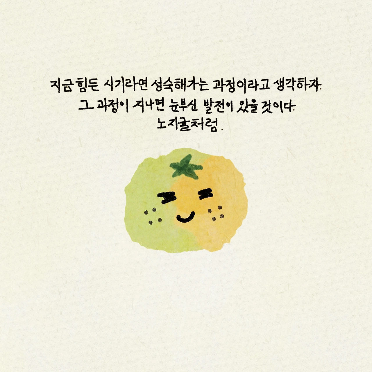 지금 힘든 시기라면 성숙해 가는 과정이라고 생각하자. 그 과정이 지나면 눈부신 발전이 있을 것이다. 노지귤처럼.