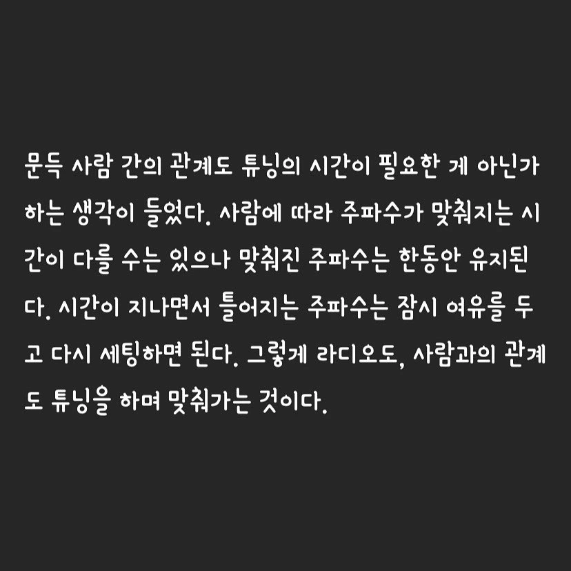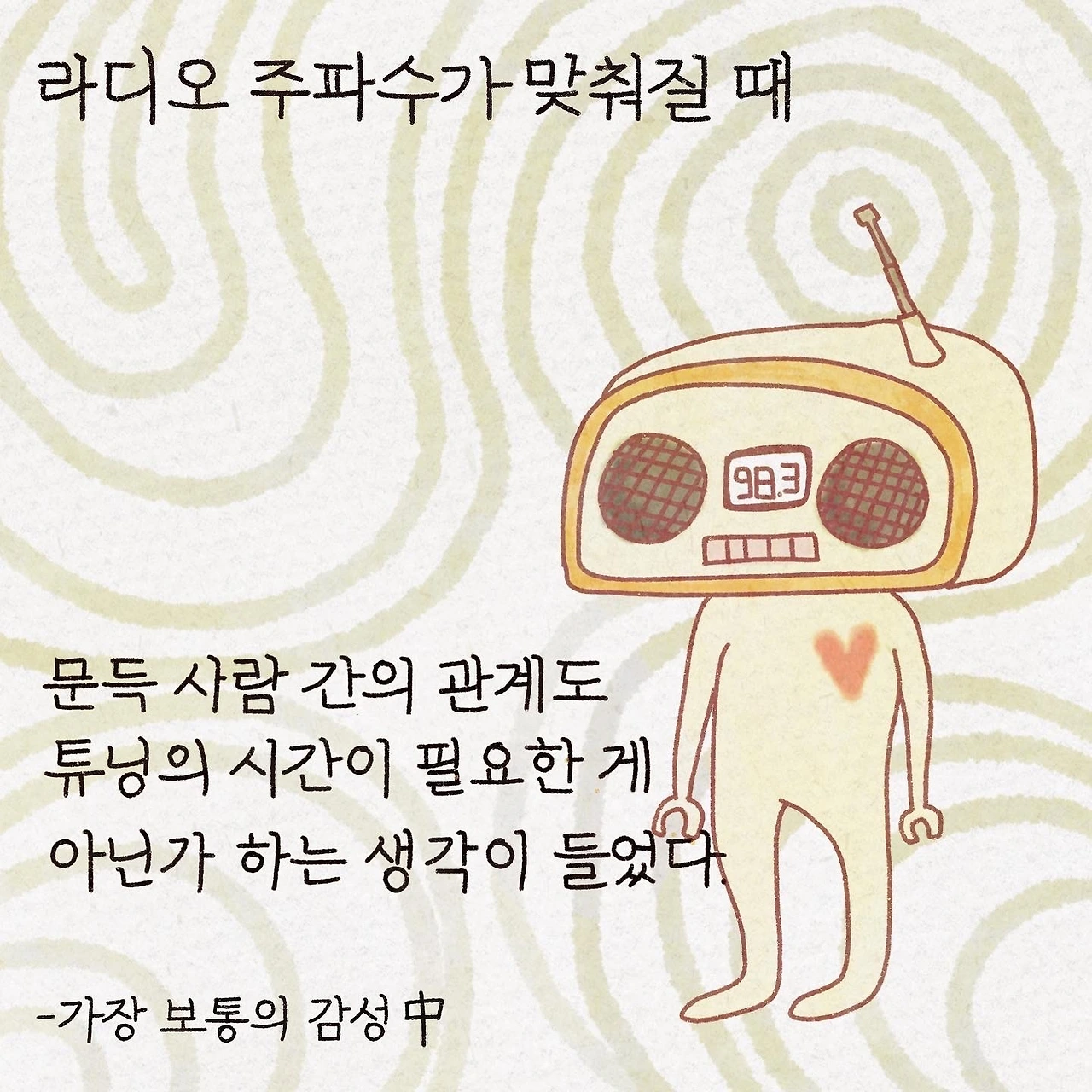 * 그림은 @roxie.kang 님 작품#라디오 #주파수 #튜닝 #인간관계#가장보통의감성 #시소출판사 #이어진 #이어진작가#에세이 #감성에세이 #책