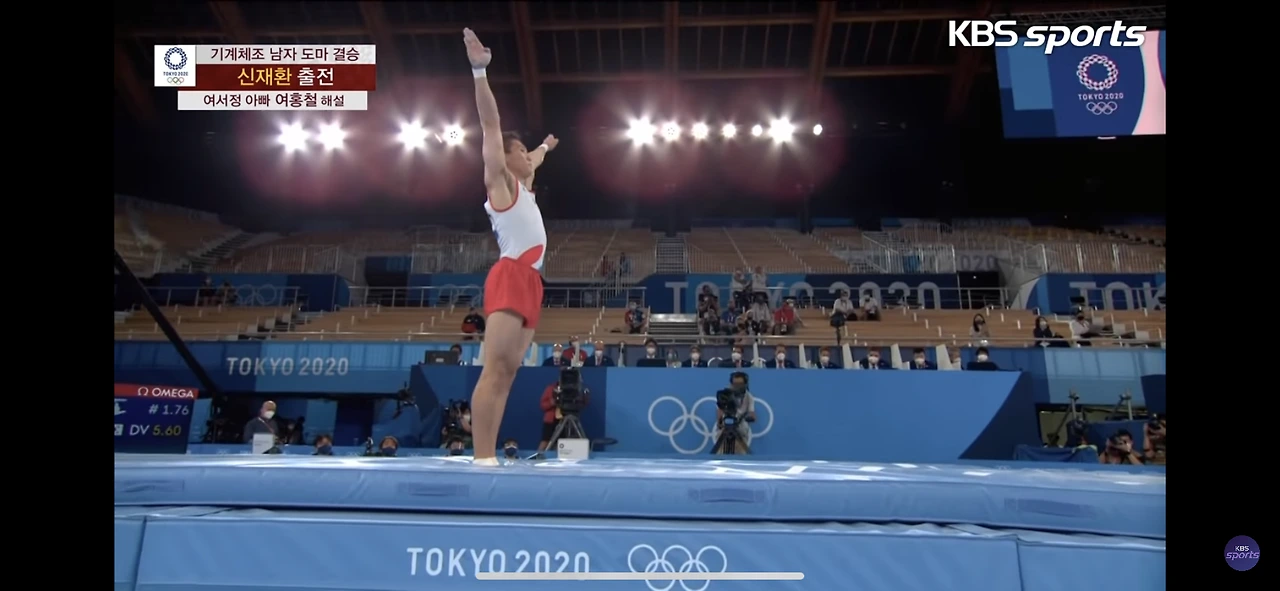 신재환의 금메달이 확정되자 해설자를 소개하는 자막이 ‘여서정 아빠 여홍철’에서 ‘신재환 선배 여홍철’로 바뀌어 있었다. 신재환 뿐 아니라 도마 경기에 참여한 선수들이 얼마나 많이 뛰고, 점프를 하고, 연습을 했을까 생각하니 뭉클해 졌다.
