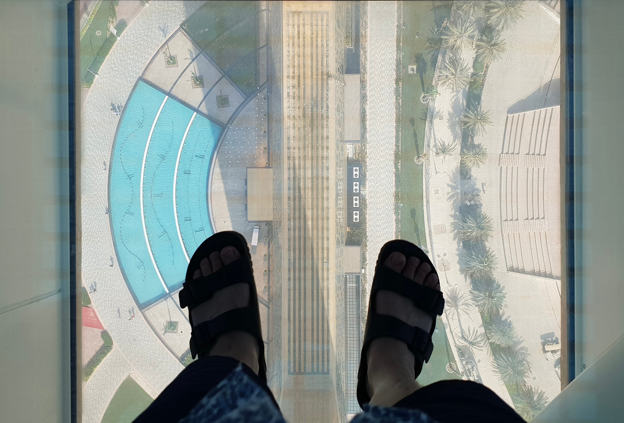 오전에는 우버를 타고 그해 1월에 막 개관한 ‘두바이 프레임(Dubai Frame)’으로 향했다. 이름 그대로 거대한 황금빛 액자 모양을 한 이 전망대에도 역시나 ‘세계에서 가장 큰 액자’라는 수식어가 당당히 붙어 있었다. 아찔한 높이의 투명한 유리 바닥 위를 조심스레 걸으며 발아래 풍경을 내려다보는 경험은 짜릿함 그 자체였다. 이때 받은 강렬한 인상은 훗날 우리 서비스 ‘갤럭시티’의 대표 콘텐츠 중 하나인 ‘고공 파이프 건너기’를 기획하는 결정적인 모티브가 되었다.