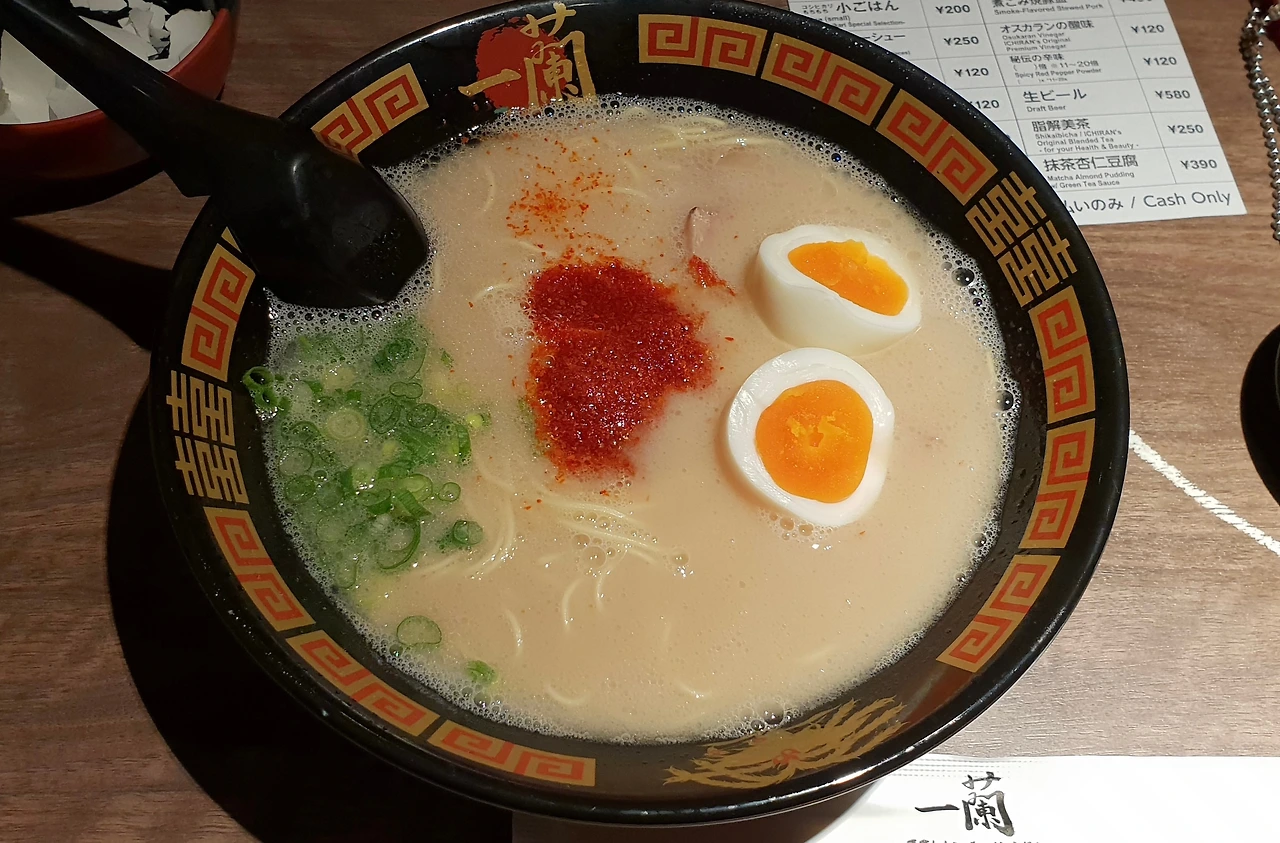 신주쿠에 도착하자마자 나는 작년의 쓰라린 실수를 떠올렸다(너무 짠 라멘을 골라 원성을 샀던 ‘5화’의 기억). 이번에는 실패 없는 검증된 맛을 찾아 가부키초의 ‘이치란 라멘’으로 향했다. 아침 겸 점심으로 마주한 라멘 한 그릇. 적당히 칼칼한 맵기를 선택해 걸쭉한 국물에 밥까지 말아 넣으니, 이건 라멘이라기보다 부산의 진한 돼지국밥에 가깝다는 생각이 들었다. 뜨끈한 국물이 목을 타고 넘어가자 몸속에 남아있던 전날의 알코올 조각들이 비로소 말끔히 정화되는 기분이었다.