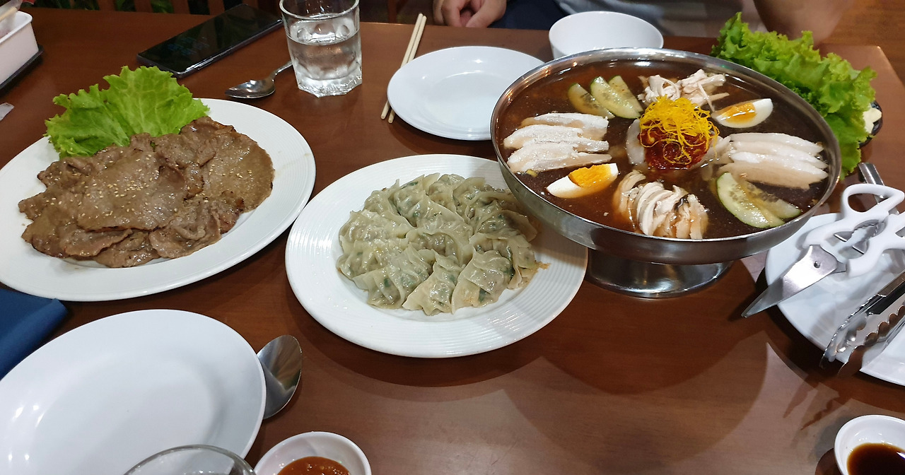 어쨌건 저녁 시간이 되어 밥을 먹기로 했다. 친구의 상태를 보니 동남아 현지 음식은 부담스러울 것 같아, 근처 한식당을 찾아보았다. 검색해보니 숙소 바로 앞에 북한 사람들이 운영하는 식당이 있었다. 남한식이든 북한식이든, 일단 한식은 한식이니 그곳으로 정했다.