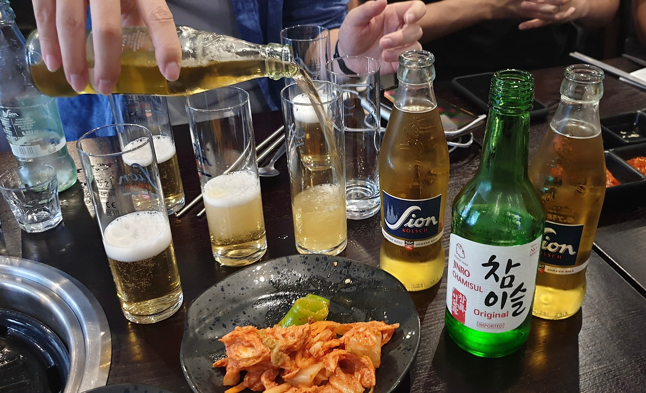 노릇하게 구워진 고기 한 점을 상추에 싸서 입에 넣는 순간, “아, 이제야 살 것 같다”는 탄성이 절로 터져 나왔다. 여기에 구수한 된장찌개까지 곁들이니 그야말로 세상을 다 얻은 기분이었다. 우리는 쾰른의 자부심인 ‘시온 쾰쉬(Sion Kölsch)’에 ‘참이슬’을 섞어, 진정한 동서양의 화합을 상징하는 소맥을 제조해 잔을 부딪쳤다. 경쾌한 타격음과 함께 웃음소리가 터져 나왔다. 전시장에서 겪은 무용담과 아찔했던 실수담이 안주가 되어 쌓여가며, 쾰른의 마지막 밤은 그렇게 뜨겁게 익어갔다.