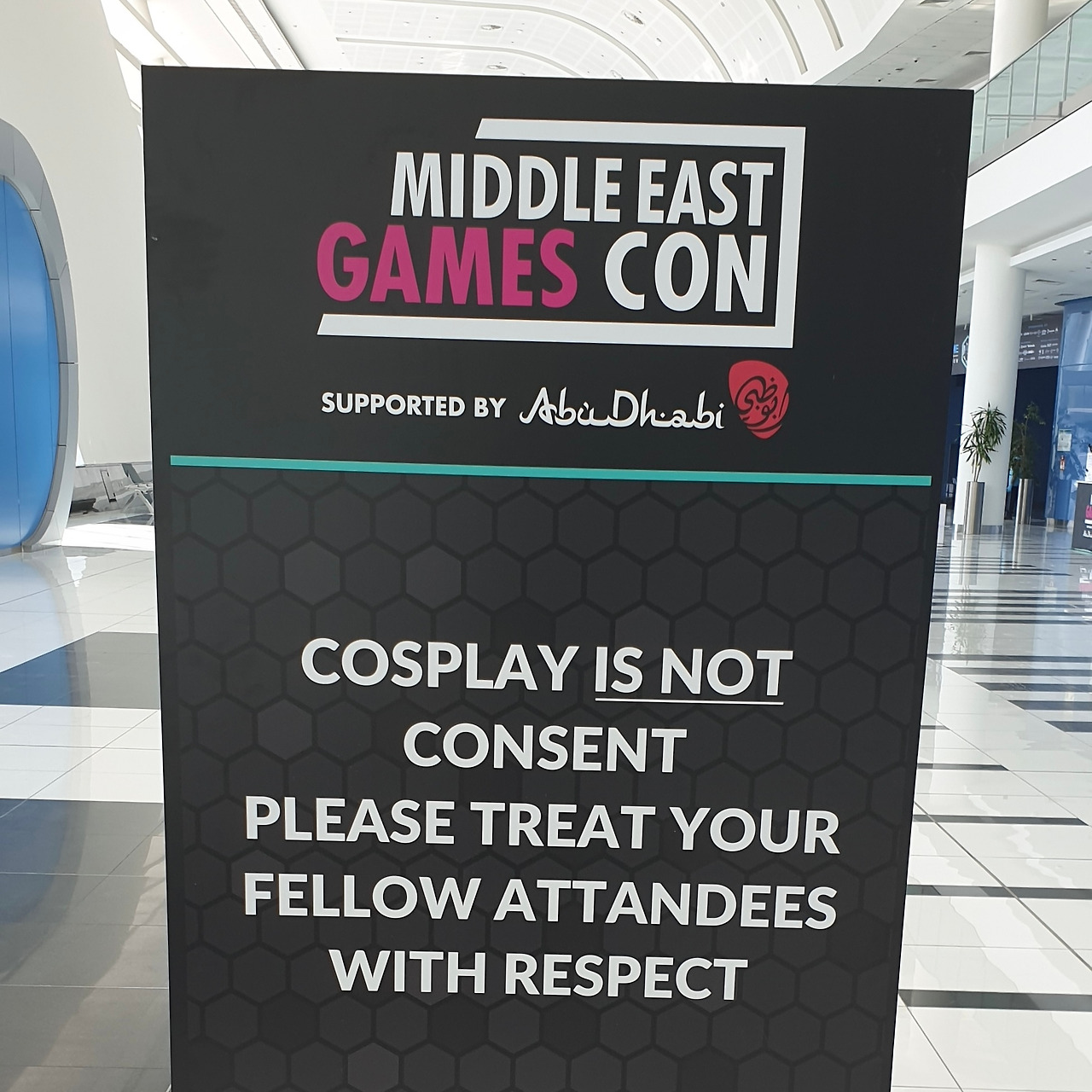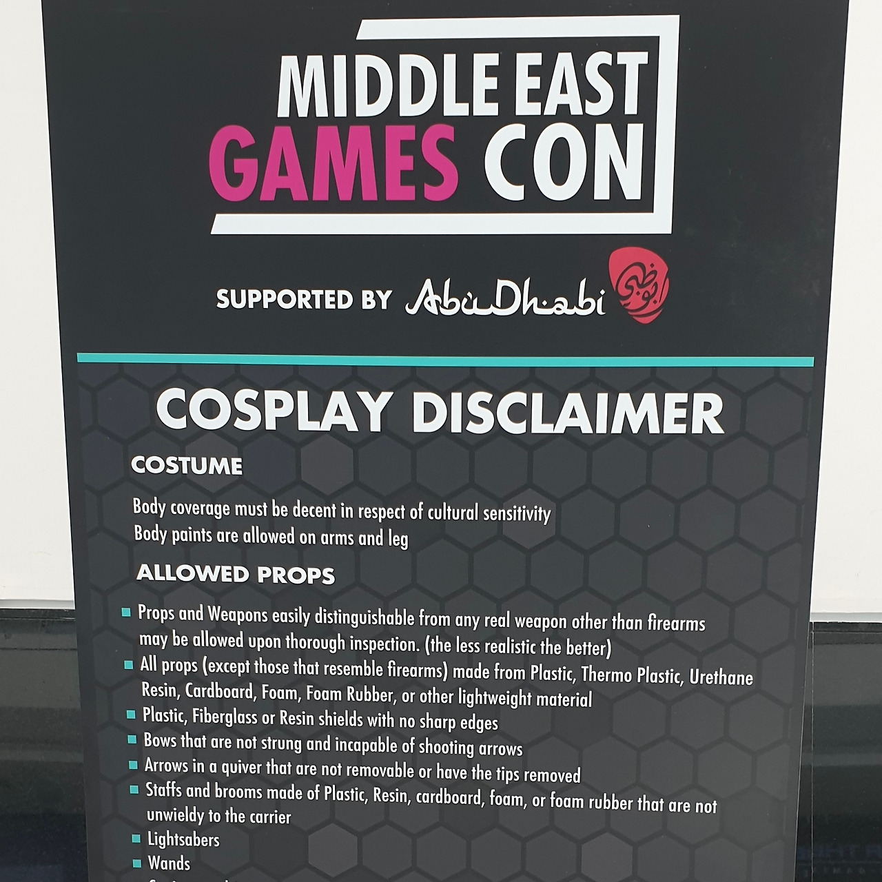 전시장을 누비다 보니 흥미로운 풍경이 눈에 들어왔다. 게임쇼의 꽃이라 불리는 ‘코스튬 플레이(코스프레)’에 대한 안내문이었다. 노출에 엄격한 이슬람 문화권에서 과연 코스프레가 가능할까 싶었다. 도쿄나 독일의 게임쇼처럼 화려한 피부 노출과 파격적인 의상을 기대하기는 힘든 환경이기 때문이다.