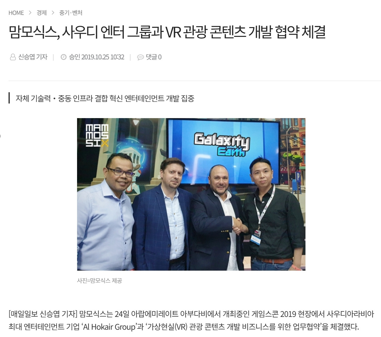 최근 개방의 바람이 불고 있는 사우디 시장에 대해 그들은 아주 실질적인 통찰을 들려주었다. 야외 활동이 불가능할 정도로 뜨거운 중동의 기후 특성상, 실내에서 즐길 수 있는 VR 콘텐츠는 그들에게 생존이자 필수적인 놀거리가 되리라는 점이었다. “사우디를 영화 레디 플레이어 원에 나오는 오아시스처럼 가상 세계로 만들겠다”는 우리의 제안에 그들은 진지하게 귀를 기울였다. 그렇게 대화를 이어간 끝에, 다음 해 열릴 2020 두바이 엑스포를 겨냥해 협력에 박차를 가하자는 데 의견을 모았고, MOU를 체결했다.