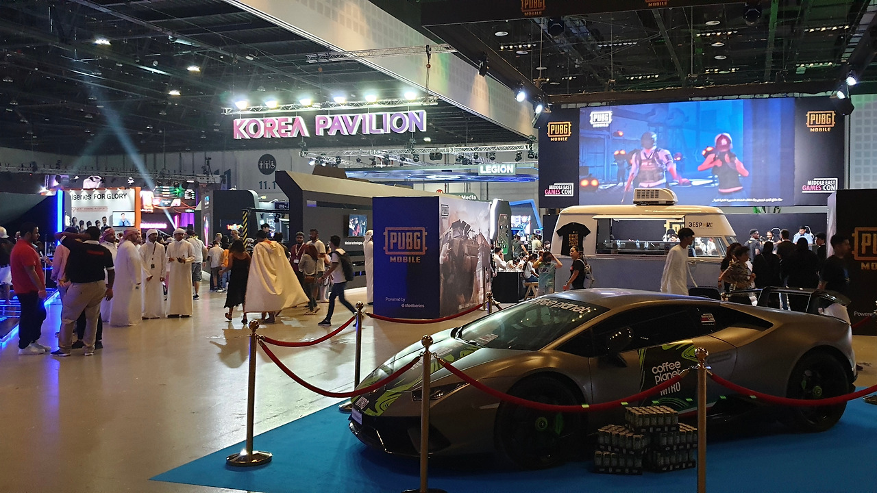 전시장 입구에 들어서자마자 내 눈을 의심케 하는 광경이 펼쳐졌다. 전시장 한복판에 게임 브랜드로 래핑된 람보르기니가 대놓고 서 있는 게 아닌가. 모형이나 전시용 컨셉카가 아니었다. 당장 시동을 걸고 아우토반을 달려도 이상하지 않을 ‘진짜’ 슈퍼카였다. 수많은 관람객이 오가는 혼잡한 공간에 수억 원을 호가하는 차를 아무렇지도 않게 세워두는 배포라니. “역시 중동 클래스”라는 감탄사가 절로 터져 나왔다.