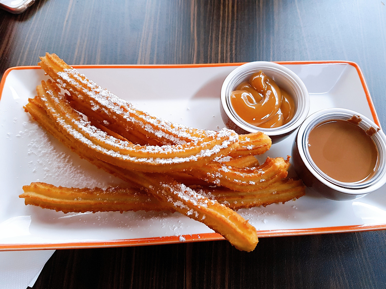 잠깐 든 억울함은 츄러스가 나오자 바로 없던 것처럼 사라졌다. 갓 튀겨 따끈한 츄러스에 뿌려진 슈가 파우더와 밀크 초코와 소금 카라멜 소스가 한 통 가득하니 꾸덕한 모습을 드러냈다. 막 기름 샤워를 끝낸 츄러스라서 바로 먹진 못했고, 몇 분 정도 금방 식길 기다려 먹은 츄러스는 굉장히 바삭했다. 내가 한국에서 먹어본 츄러스는 모두 가운데가 빵처럼 쫀득했는데 호주의 츄러스는 그 부분이 아예 없었다. 겉이 굉장히 빠삭했다. 거기에다가 초코와 카라멜 소스를 찍어 먹으니 당이 한꺼번에 확 충전되는 느낌이었다.