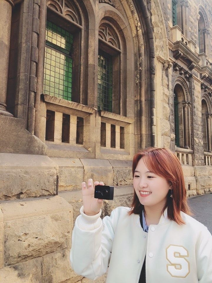 브이로그를 찍는다는 것 자체가 기대되기도 했고 어색한지라 웃음이 막 나왔는데, 그 웃음이 자연스러웠던지 내 사진을 잘 찍어주겠다던 알라가 찍은 사진이 바로 아래 사진이다.