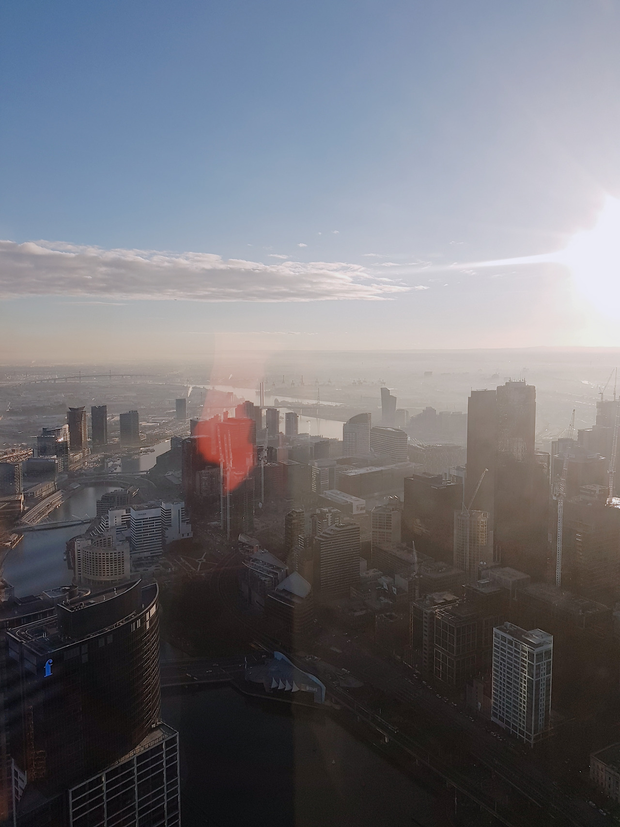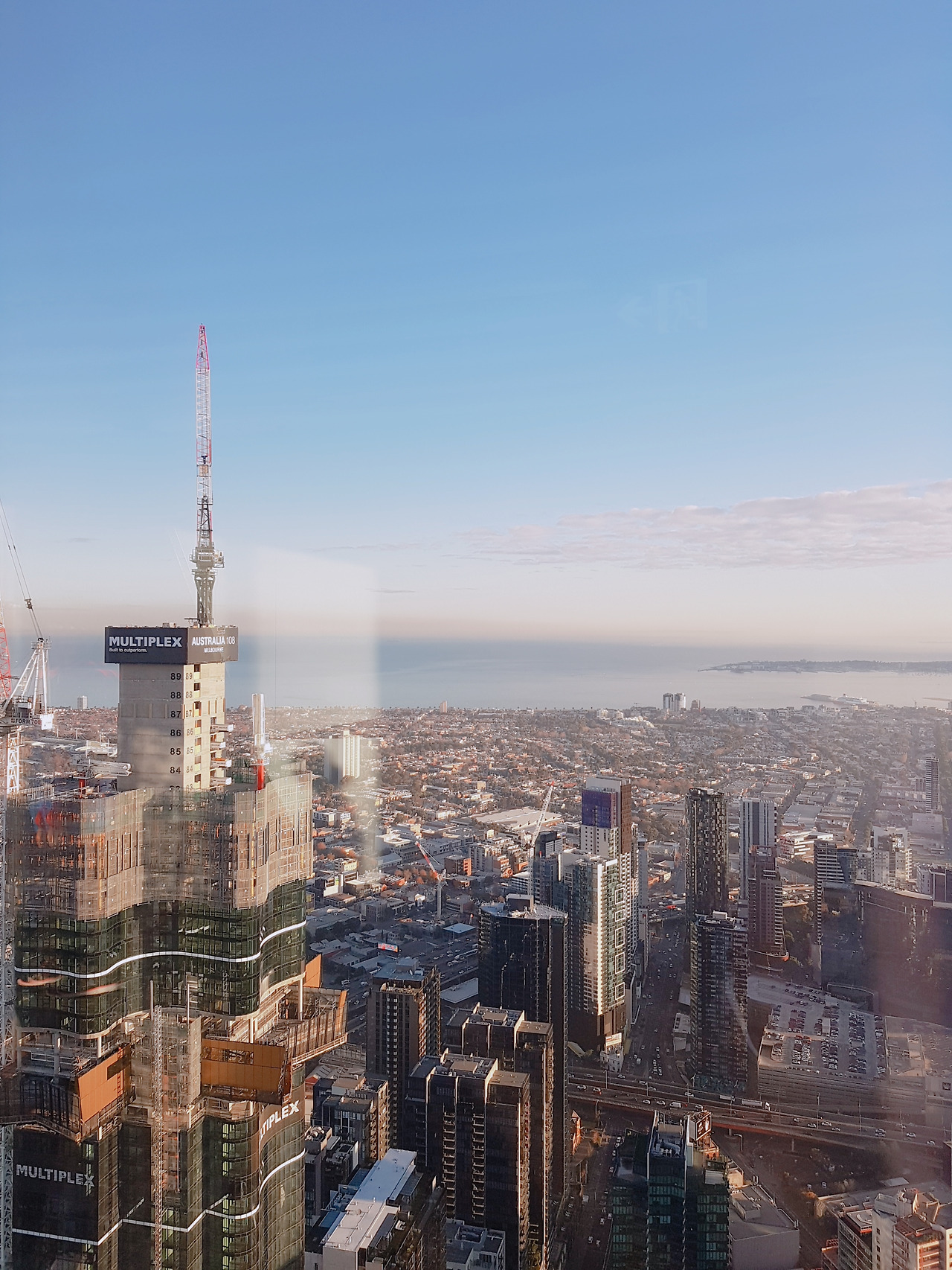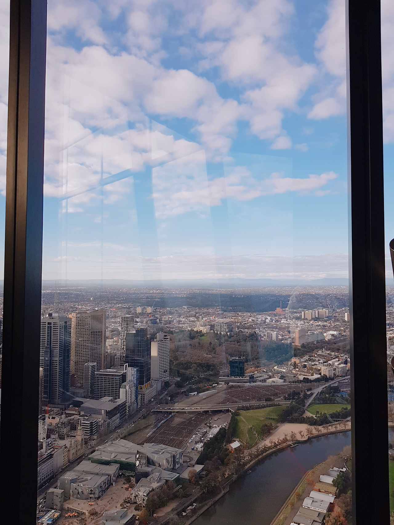 귀가 깊은 수영장에 들어갔다 나왔을 때 물이 잔뜩 들어가 먹먹해진 걸 입을 크게 벌리며 푸는 것도 잠시, 좁은 통로를 지나 우리는 멜버른의 전경을 모두 바라볼 수 있는 스카이덱 전망대에 도착했다.
