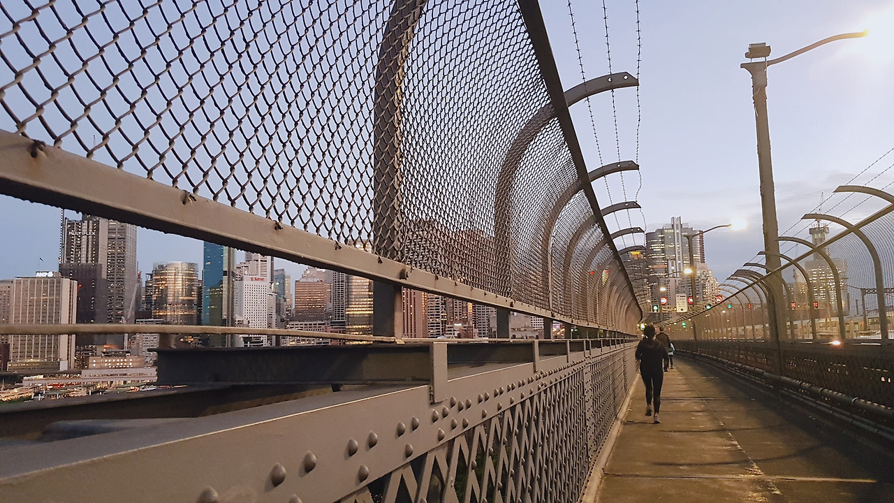 우리는 다리 옆면을 겨우 돌아 사람들 몇 명이 무리 지어 어딘가로 향하는 걸 발견했다. 우리처럼 하버 브릿지를 가는 여행객이 아닐까? 기대에 부풀어 그들을 따라가자 이내 하버 브릿지로 향하는 높지 않은 엘리베이터를 발견했다. 냉큼 올라타 내리자 바로 앞을 지나가는 자동차. 우리는 그제야 드디어 하버 브릿지에 도착했다.