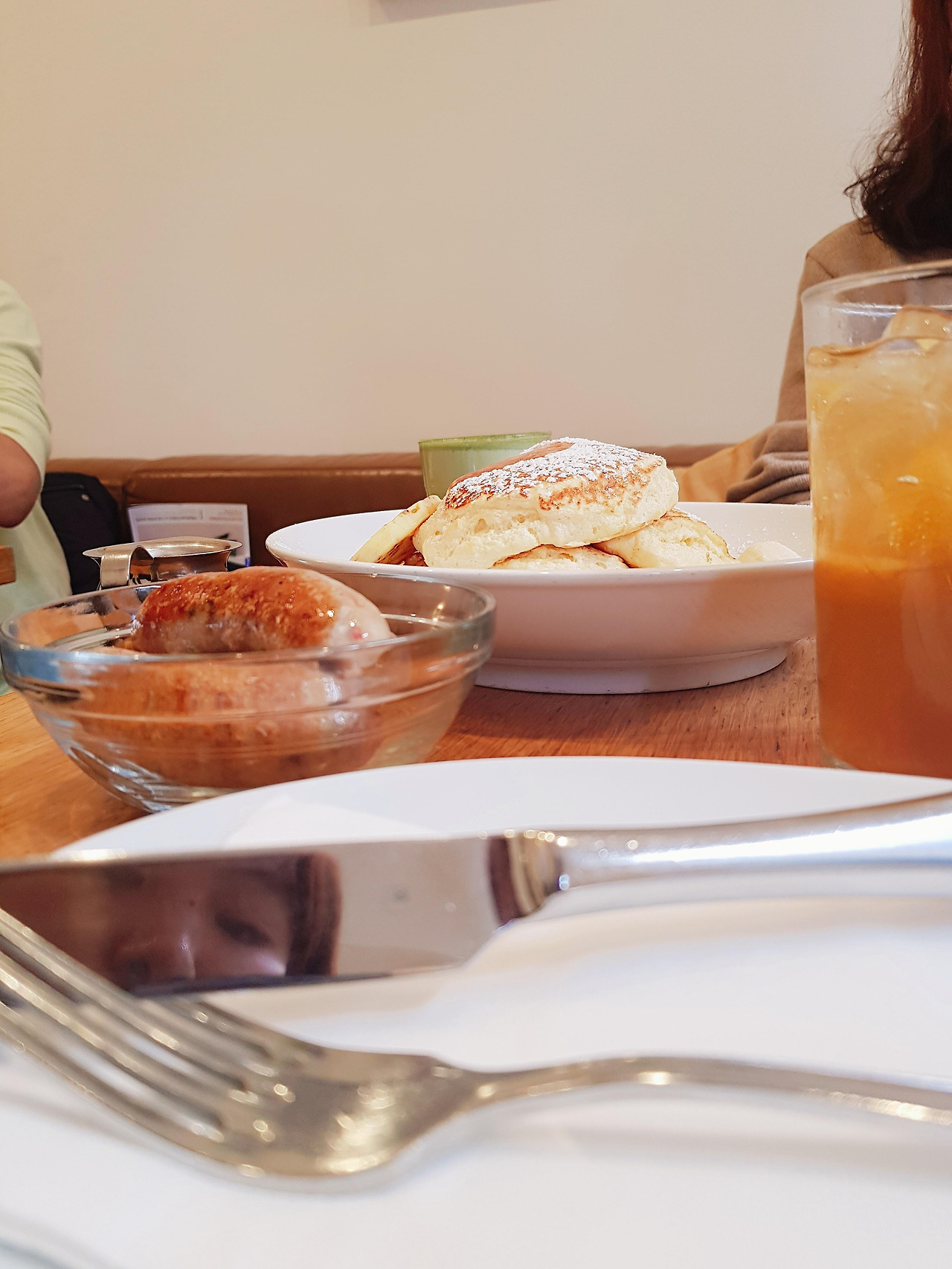 한 입 먹고 너무 맛있어서 인스타그램에 인증샷을 올렸는데 친구가 디엠으로 초점을 잘못 잡았다고 하더라. 팬케이크가 아니라 나이프에 비친 무서운 내 모습이 더 잘 보인다고... 나는 사진 찍고 올리고 나서도 몰랐는데. 다들 제 모습이 더 잘 보이나요? 내 의도는 그게 아니었는데...