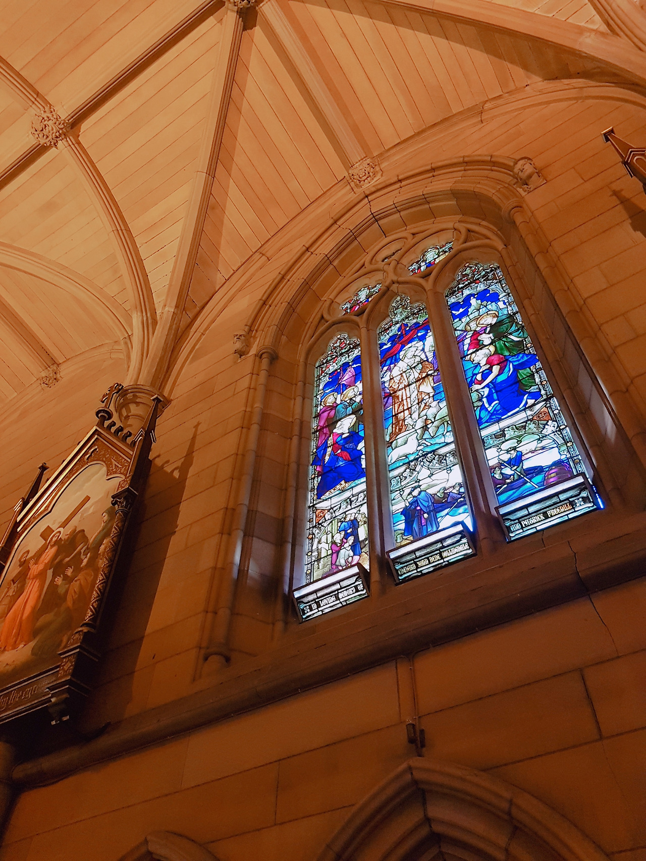 그렇지만 나는 건축이나 서양사에 문외한이라 외관만 보면 멜버른에서 봤던 세인트 패트릭 대성당과 다를 바가 없다고 생각했을 법했다. 하지만 이 세인트 메리 대성당만의 특징이 있다면 바로 신약 성서 내용을 표현한 스테인드글라스다.