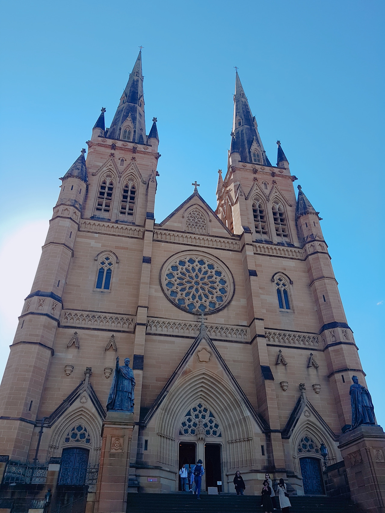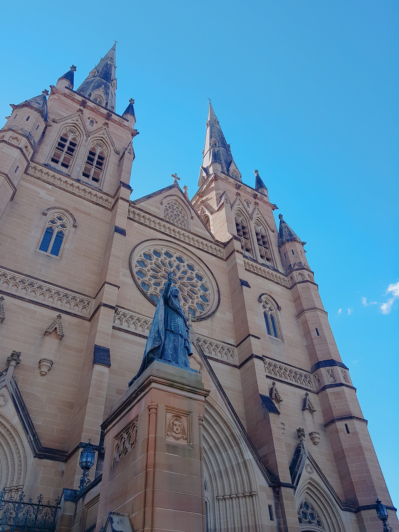 시드니에 있는 날 내내 날이 너무 좋아서 세인트 메리 대성당을 찍은 사진에서도 청아한 하늘이 가장 먼저 눈에 들어온다. 하늘을 향해 뻗은 탑을 보자면 바로 이런 것이 고딕 양식이라는 걸 대번에 알 수 있다.