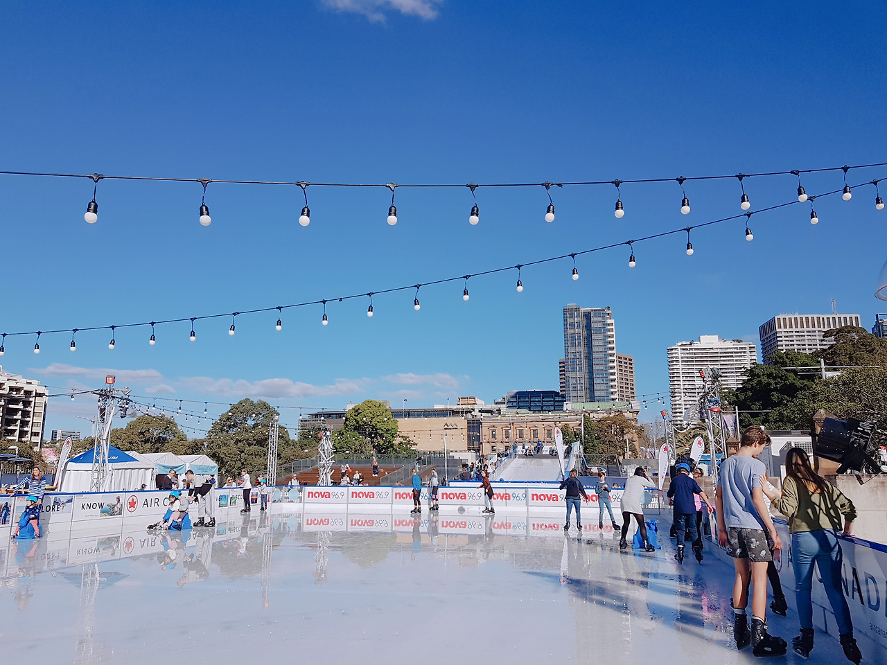 호주 박물관을 방문한 날, 우리는 박물관 꼭대기 층에서 하이드 공원 앞에 있는 아이스링크장을 발견했다. 팝업스토어처럼 기간 한정으로 열리는 듯한 이 아이스링크장 뒤편에는 세인트 메리 대성당이 있었다. 어차피 우리가 방문할 곳 중 하나였기에 알라와 나는 먼저 성당을 방문하고 아이스링크장에서 운동 겸 즐겁게 놀기로 했다.