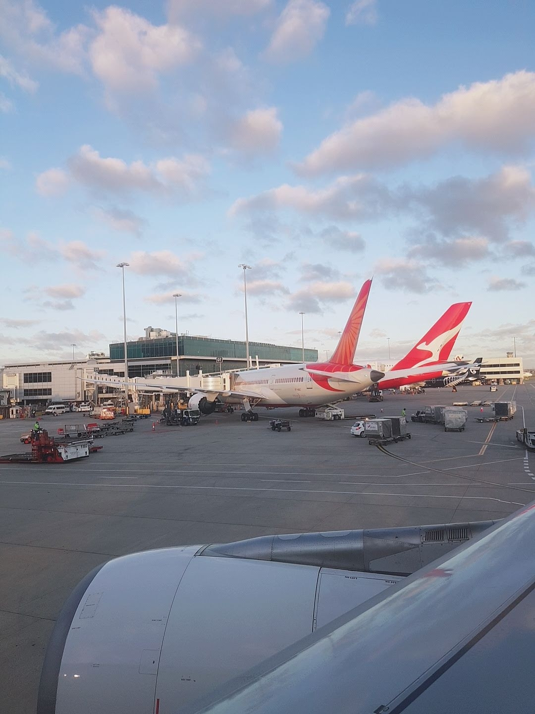 호주 국영 항공사인 콴타스 Qantas 항공을 타고 드디어 도착한 멜버른! 비행기에서 내리기 전부터 창가 밖으로 보이는 콴타스 항공사의 다른 비행기도 찍어보고 그랬다.
