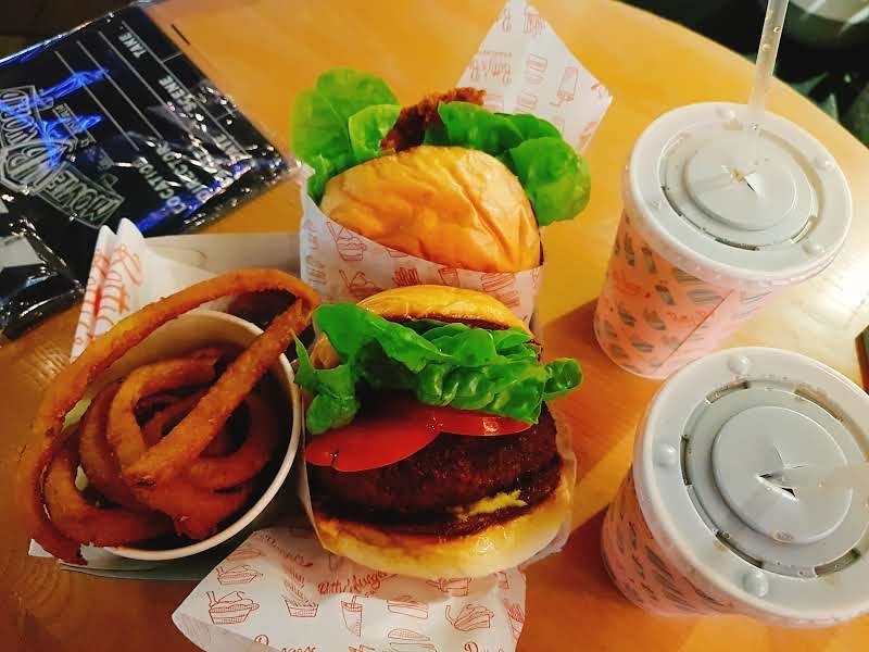 역시 날씨는 완벽해서 우리는 야외 테이블에 자리를 잡고 기본 버거 두 개를 시키려 했는데 프라이 메뉴에 어니언 프라이가 있어서 시드니에서 먹었던 양파 튀김을 생각하며 옵션을 변경했다.