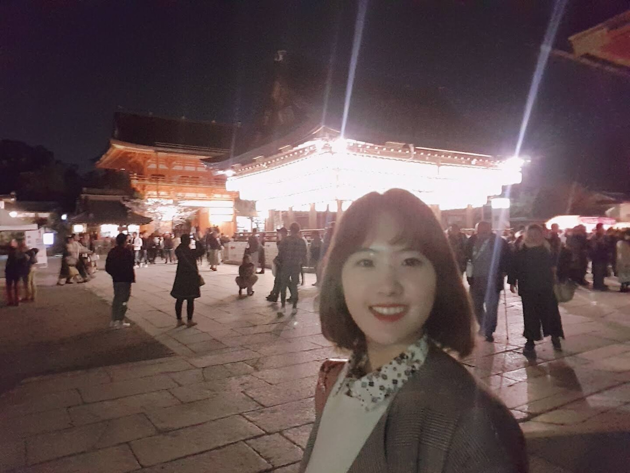 다만 이 야사카 신사에 어둠이 드리운 모습을 보고 싶다면 나보다 좀 더 퀄리티 좋은 사진 찍으신 분을 보길 바란다. 여기도 사진에서 불이 난다... 저 불이 나는 장소를 묘사하자면 원통형 종이 등불이 여러개 달려서 은은하게 촛불을 내는 모양이었다. 그곳 주변에서 소원도 빌고 걷기도 하며 덕담을 나누는 것 같았다. 다음 번에 방문한다면 잔돈을 가지고 소원도 빌어보고 싶다.