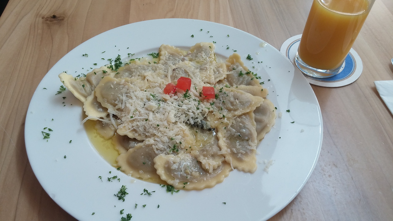 메뉴판을 보니 온통 파스타 종류로 가득했고 이곳은 파스타 전문점이었다. 아무거나 대충 골라 오렌지 주스와 함께 주문했다. 독일에 와서 맥주가 아니고 오렌지주스를 마신다. 주문한 음식이 나왔다. 내가 주문한 것은 라자냐였다. 내 허기진 배는 대실망이었다.