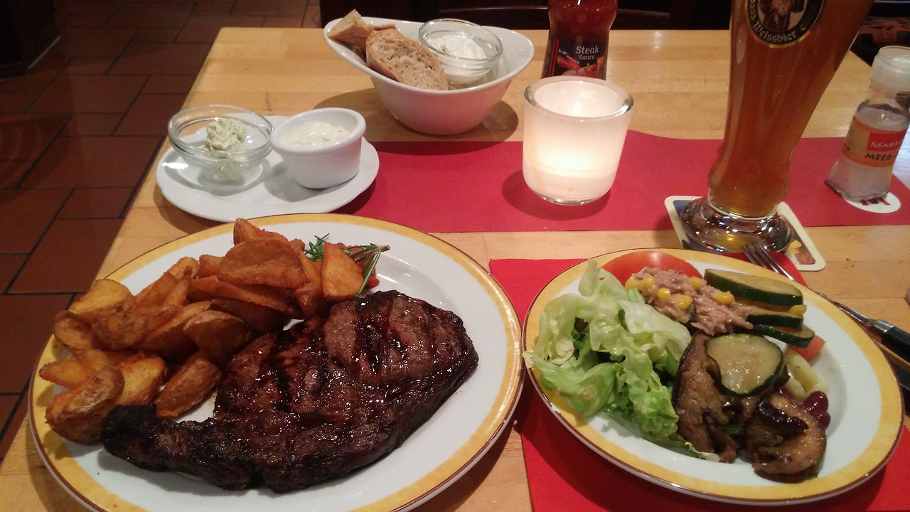 기차는 오후 1시가 다 되어 독일 뮌헨에 도착했다. 기차역에서 지하철을 이용해 미리 예약해 둔 숙소를 찾아갔다. 고등학교 시절 독일어를 배웠는데도 지하철의 역명이 눈에 잘 들어오지 않았다. 숙소에 짐을 풀고 다시 지하철을 타고 센딩링거토르 역에서 내려 마리엔 광장으로 갔다. 그러다 보니 점심 식사 시간이 이미 지나버렸고 허기가 올라와 기운이 없었다. 마리엔 광장으로 가는 길에 착하게 생긴 독일 아가씨에게 맛집을 물었다. 파라솔 있는 곳까지 가서 왼쪽으로 돌면 ‘호프 스타트’라는 레스토랑을 소개해 주었다. 레스토랑은 점심시간을 훌쩍 지나서인지 손님이 없었다.