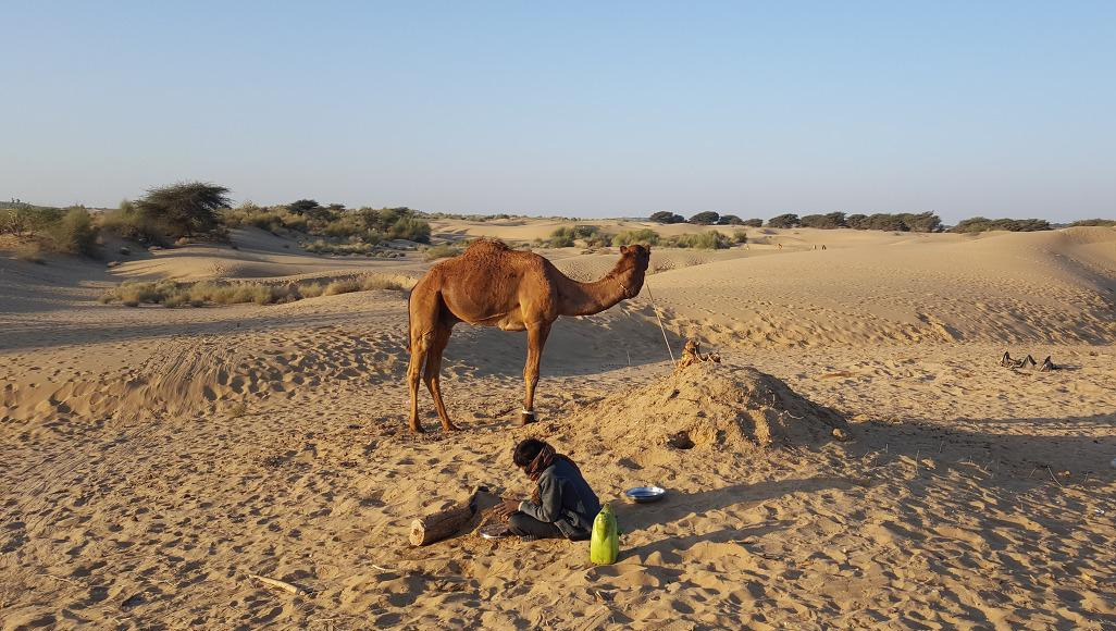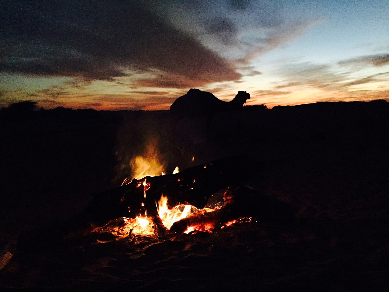 날이 어두워지고 낙타 몰이꾼 아이들이 모닥불을 피웠다. 모닥불이 어둠을 두어 발걸음 뒤로 밀어내고 길게 그림자를 만들어냈다. 아이들이 저녁식사로 카레밥을 우리에게 가져왔다. 어린 나이에도 가족을 도와 음식을 나르고 식사하는 동안 북을 치고 노래를 부르며 작은 공연도 했다. 서툴지만 당당해 보이고 착하고 예뻤다. 중학교에 이제 입학하는 아들과 아버지가 이번 사파리를 같이 했다. 아버지의 다정함에 아들은 불평하면서도 받아들이는 모습이 정겨워 보였다.