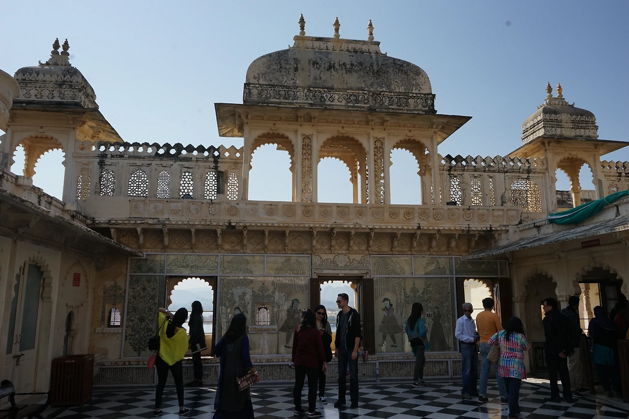 우다이푸르는 조드푸르나 자이살메르와는 분위기가 전혀 달랐다. 이곳은 인도인들의 신혼여행지와 휴양지로 유명할 정도로 인도인에게도 관광도시였다. 피촐라 호수를 끼고 있는 우다이푸르의 백미인 ’ 시티 팰리스‘에 갔다. 입구에서부터 이곳이 왜 세밀화로 유명한 곳인지 알 수 있었다. 벽에 빈 곳이 없이 가는 붓으로 그려진 세밀화가 입구에서부터 감탄을 자아냈다. 인공호수인 피촐라 호수가 내려다 보이는 산등성이에 웅장하게 서 있는 이 아름답고 새하얀 우다이푸르의 도시 궁전인 ’ 시티 팰리스‘는 16세기 중엽 ’마하라자 우다이 싱‘에 의해 지어졌다.