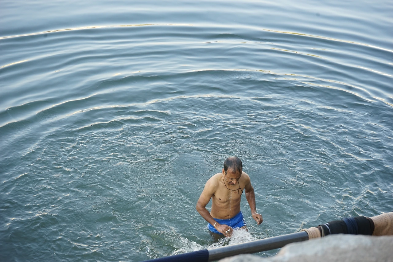 커피를 마시고 강가우르 가트에 가보았다. ’가트(Ghat)‘는 우리말로 ’터‘라고 부르면 대충 뜻이 통할 듯하다. 하지만, 갠지스강을 따라 만들어진 가트는 단순한 터 이상의 의미를 지닌 종교의 공간이었다. 이들에게 가트는 교회이고 성당이었다. 가트에서 아침에 목욕하며 마음의 때를 씻고 하루를 시작하는 힌두인을 만났다.