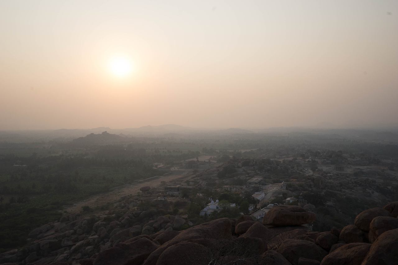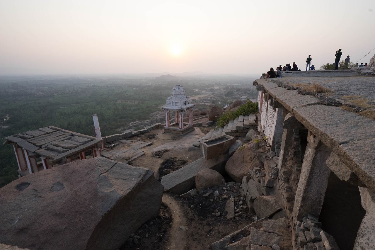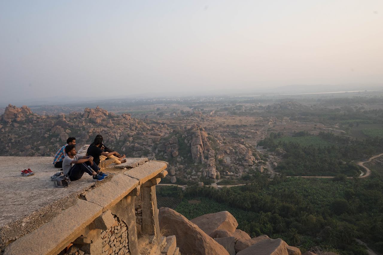 함피는 남인도에서 번성한 마지막 힌두 왕조 비자야나가르왕국의 수도였다. 1565년, 북쪽 무슬림 연합국의 침략을 받아 6개월 동안 약탈을 당했고 그러고 나서 버려졌다. 이 폐허의 흔적과 주변의 화강암 지형이 어루어져 세상에 어디에서도 볼 수 없는 독특한 분위기를 만들어 내고 있었다. 마탕가 힐은 30분 정도 화강암 돌산을 올라야 했다. 아쉬는 기다리고 있을 테니 혼자 다녀오라고 했다. 그렇다고 혼자 오르지는 않았다. 어디에서 왔는지 내 뒤에 또 내 앞으로 사람들이 올라오고 지나갔다. 함피는 도시가 폐허가 되고 돌로 굳어진 것처럼 돌을 다듬어서 만들었다고 믿기 어려울 만큼 조각이 섬세하고 아름다웠다. 주위에 온통 돌뿐이었다. 이 황량한 곳에 돌이 꽃을 피운 듯했다. 마탕가 힐에 올랐다. 해가 조금 여유를 두고 있었다. 주변이 너무도 조용했다. 함피를 가로지르는 퉁가바드라 강 주위로 어제 이 아름다운 왕국이 폐허가 된 듯 돌들의 아귀가 어긋나 있었다. 그냥 바라보고 있으면 나도 그대로 돌로 변할 듯했다. 시간이 돌처럼 무겁게 느껴졌다.