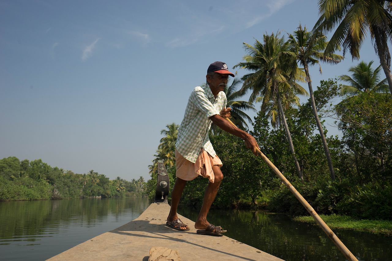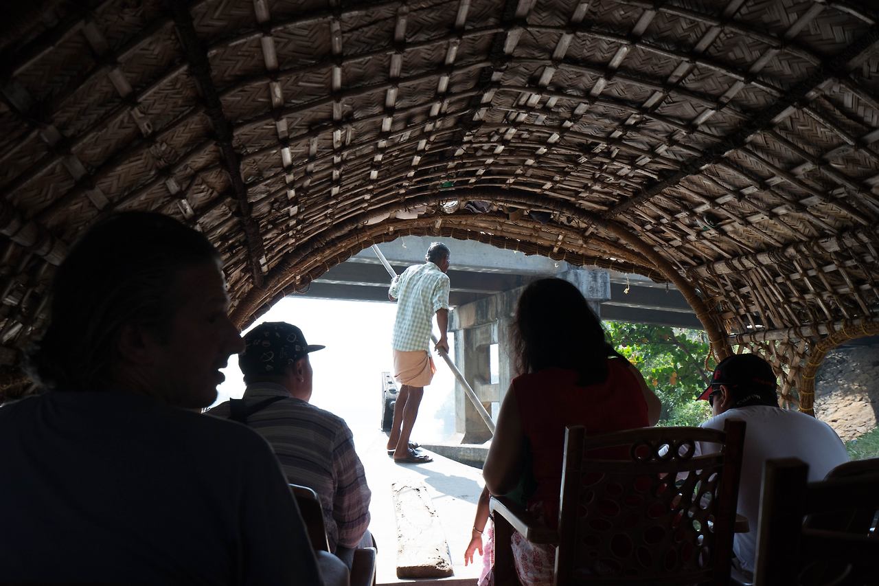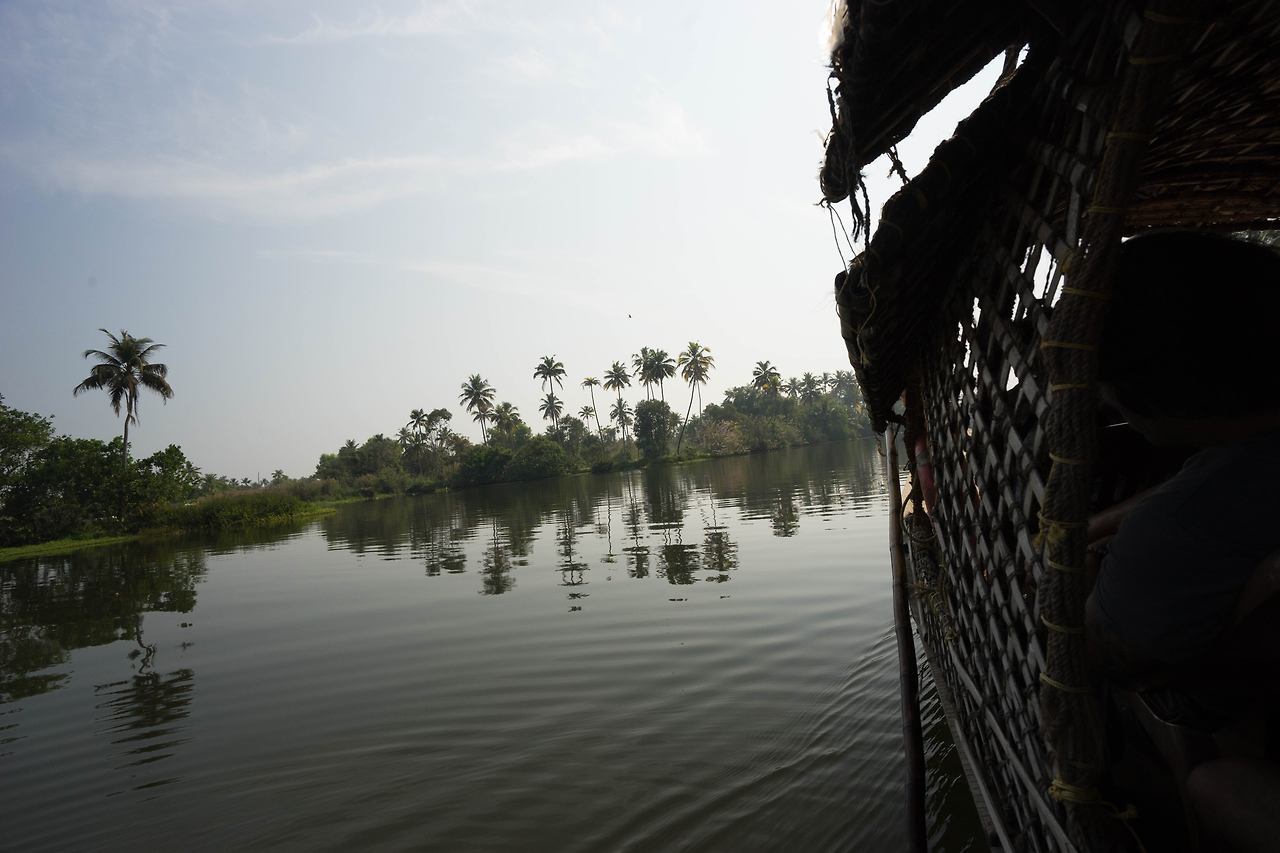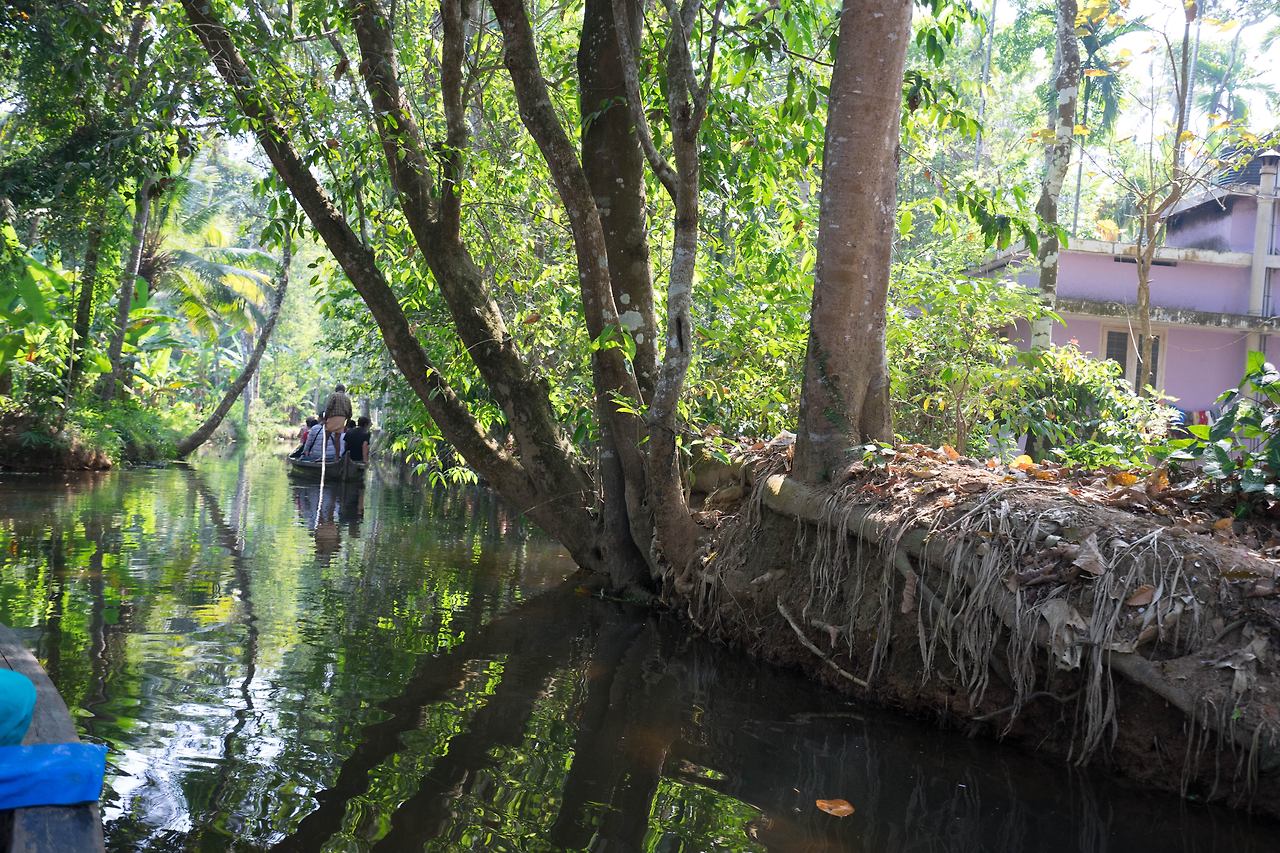 택시는 약속한 시간을 한 시간을 넘겨 도착했다. 이미 택시 안에는 나 외에 다른 수로 유람객이 타고 있었다. 이들도 혹시 수로 유람을 망칠지도 모른다는 걱정을 했을 것이다. 택시를 타고 한참을 가서 내린 곳은 물길을 따라 키 큰 야자수 나무가 보이는 다리 밑이었다. 다리 밑에 야자수 나무로 햇빛 가림막을 엮어 만든 배인 ‘껫뚜발람’과 긴 장대를 손에 쥔 노인이 있었다. 코친이 속한 케랄라 주의 이 수로는 내셔널 지오그래픽이 선정한 세계 10대 낙원 중 하나이다. ‘꼴람’에서 ‘알레피’에 이르는 수로를 쌀 수송선으로 쓰이던 배를 개조해 밤을 새워 수로를 따라가는 여행이 유명하다. 오늘은 알레피 수로를 반나절 정도 조그만 배로 둘러보고 오는 것으로 만족해야 했다. 장대를 밀어내는 노인의 시커먼 팔뚝에 핏줄이 서자 배가 움직이기 시작했다. 배는 조용히 물 위를 미끄러졌다.