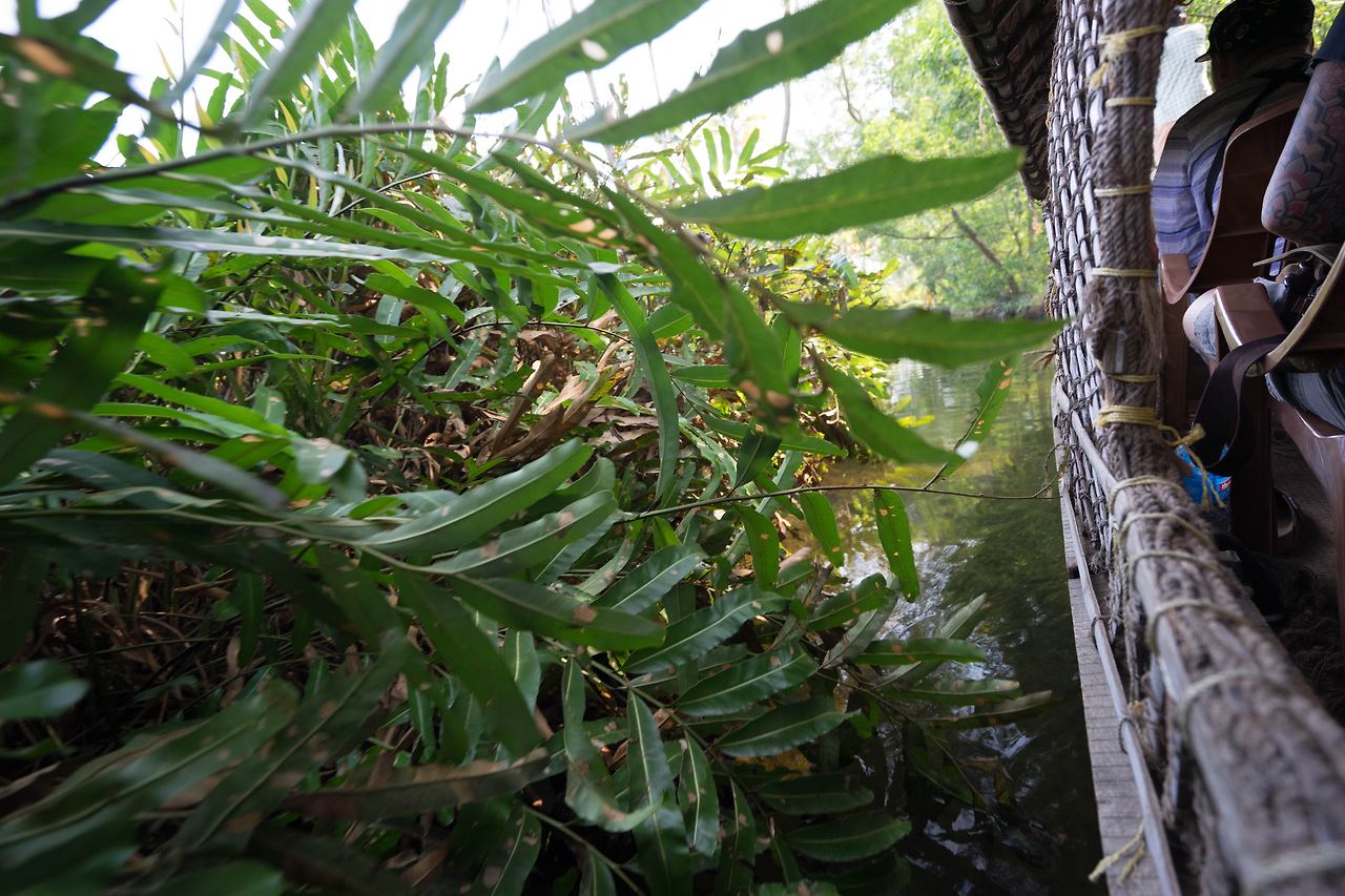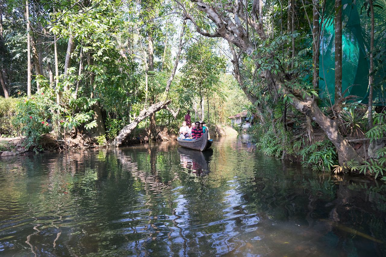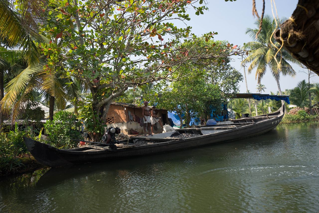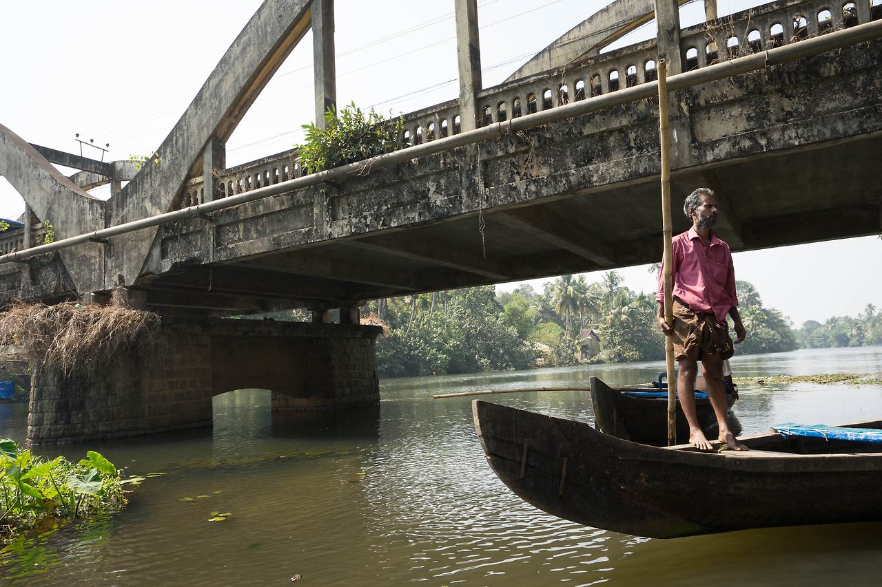 택시는 약속한 시간을 한 시간을 넘겨 도착했다. 이미 택시 안에는 나 외에 다른 수로 유람객이 타고 있었다. 이들도 혹시 수로 유람을 망칠지도 모른다는 걱정을 했을 것이다. 택시를 타고 한참을 가서 내린 곳은 물길을 따라 키 큰 야자수 나무가 보이는 다리 밑이었다. 다리 밑에 야자수 나무로 햇빛 가림막을 엮어 만든 배인 ‘껫뚜발람’과 긴 장대를 손에 쥔 노인이 있었다. 코친이 속한 케랄라 주의 이 수로는 내셔널 지오그래픽이 선정한 세계 10대 낙원 중 하나이다. ‘꼴람’에서 ‘알레피’에 이르는 수로를 쌀 수송선으로 쓰이던 배를 개조해 밤을 새워 수로를 따라가는 여행이 유명하다. 오늘은 알레피 수로를 반나절 정도 조그만 배로 둘러보고 오는 것으로 만족해야 했다. 장대를 밀어내는 노인의 시커먼 팔뚝에 핏줄이 서자 배가 움직이기 시작했다. 배는 조용히 물 위를 미끄러졌다.