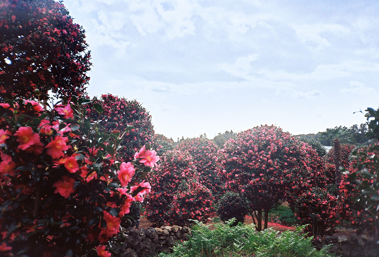 어디를 갈까 고민하다가, 요즘 사부작사부작 피기 시작한 동백꽃을 만끽하기 위해 위미의 동백수목원과, 근처 카페, 그리고 필름을 현상하기 위해 현상소를 가기로 했다. 버스를 탈 때마다 매번 지나쳤던 수목원의 동백이 더 만개하고 있었다. (아니, 육지에서는 패딩 입고 다니는 11월인데! 이래도 되는 거야?)