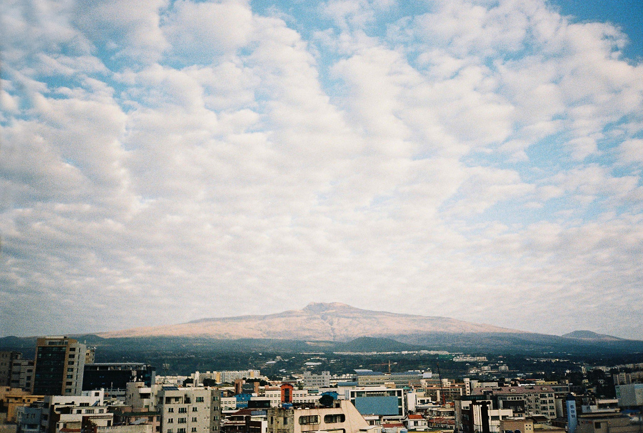 쓸데없이 낭만적인 버릇이 하나 생겼다. 하루의 첫 시작을매일 아침 숙소 창문으로 보이는 한라산으로 오늘의 날씨를 체크하는 것이다. 한라산이 백록담 머리까지 보이면 맑음, 머리가 보이지 않으면 구름 많음, 보이지 않으면 흐림. 오늘도 맑음이다. 어쩐지, 이번 주는 날씨운이 좋은 것 같다.