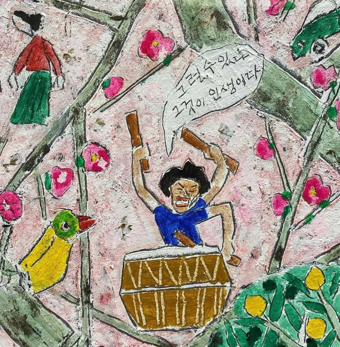 이러한 마음이 내재하는 한 행복한 삶과는 거리가 멀다는 생각을 하면서 서서히 흰머리로 덮여가는 내 모습을 바라본다. 행복과 불행, 자유와 구속, 사랑과 고통, 외로움 등을 꽃과 새, 물고기, TV, 자동차, 동백꽃, 노루, 골프 등으로 표현하며 나는 오늘도 그림 속으로 빠지고 싶다.