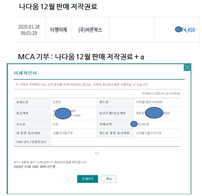 ㆍ <나다움 12월 저작권료 기부> ㆍ 20년 1월 28일 <나다움> 19년 12월 판매분에 대한 저작권료가 들어왔습니다. ㆍ 그래서 바로 MCA에 기부했습니다. ^^ ㆍ 그런데 있죠 ㅜㅜ ㆍ <나다움> 판매가 저조해서 이번에도 얼마 되지 않아요. 갈수록 ㅠㅠ ㆍ 하지만 기부할 수 있다는 사실만으로도 행복한 하루입니다. ㆍ <나다움> 은 의미 있고, 행복한 삶을 위해 자기만의 다움을 찾고, 만들고, 실행하는 책입니다 또한 청년들의 다움을 찾고, 실현하는데 기부되는 선한 책이기도 합니다 ㆍ 많은 관심 부탁드려요 ^^ ㆍ #나다움 #기부하는책 #MCA #행복한삶 #글쓰는컨설턴트 #경영컨설턴트 #청명
