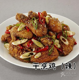 튀긴 닭고기에 소스를 얹어 빨리 휘저어 만든 요리
